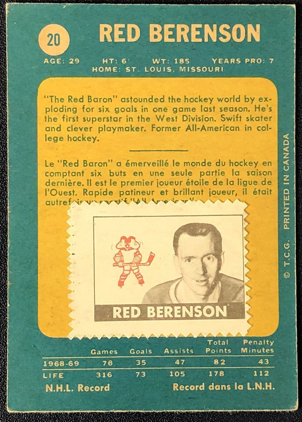 Card #20 NHL, hockey, vintage, OPC, hall of fame