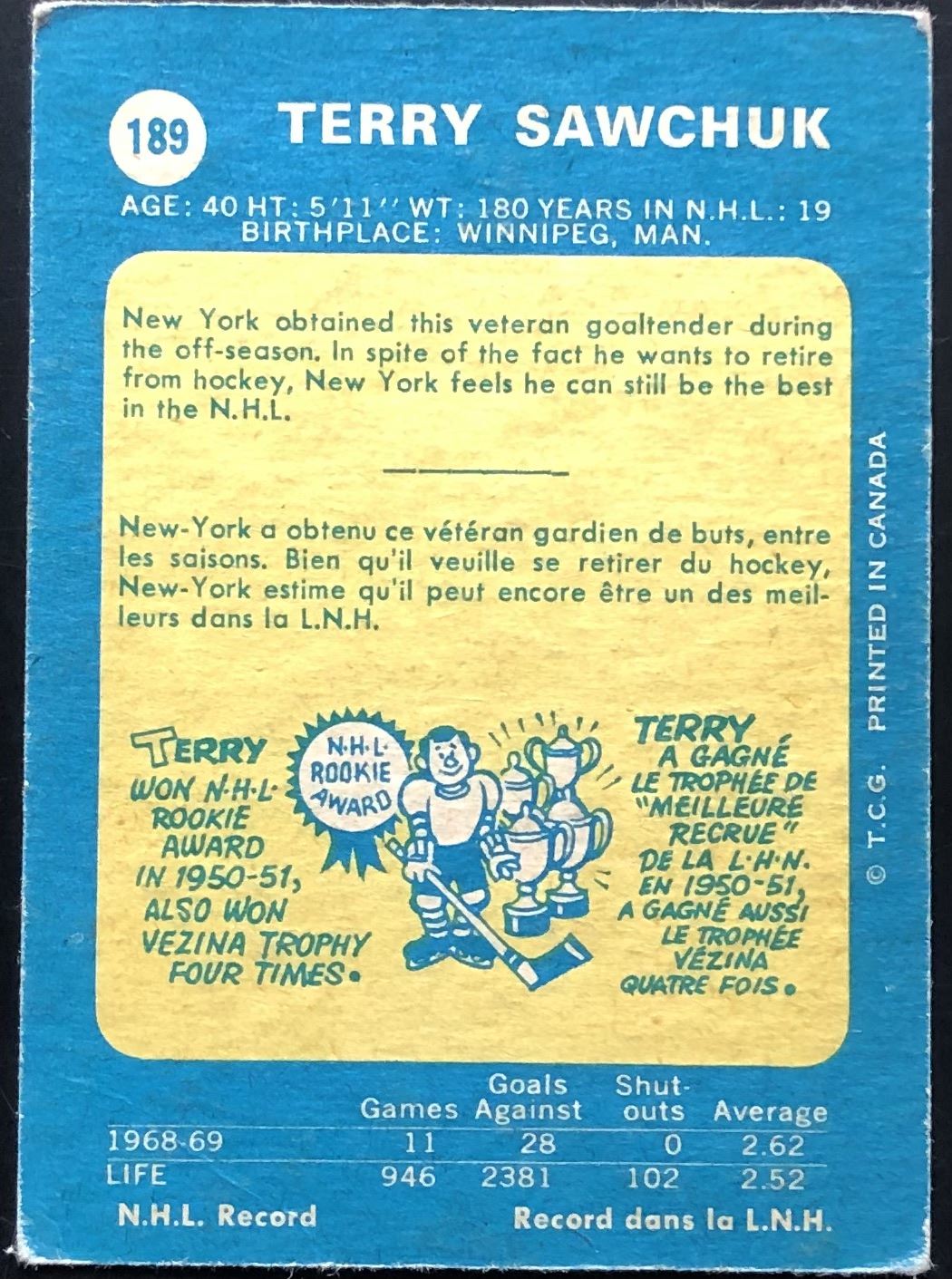 Card #189 OPC, vintage, NHL, hockey, hall of fame