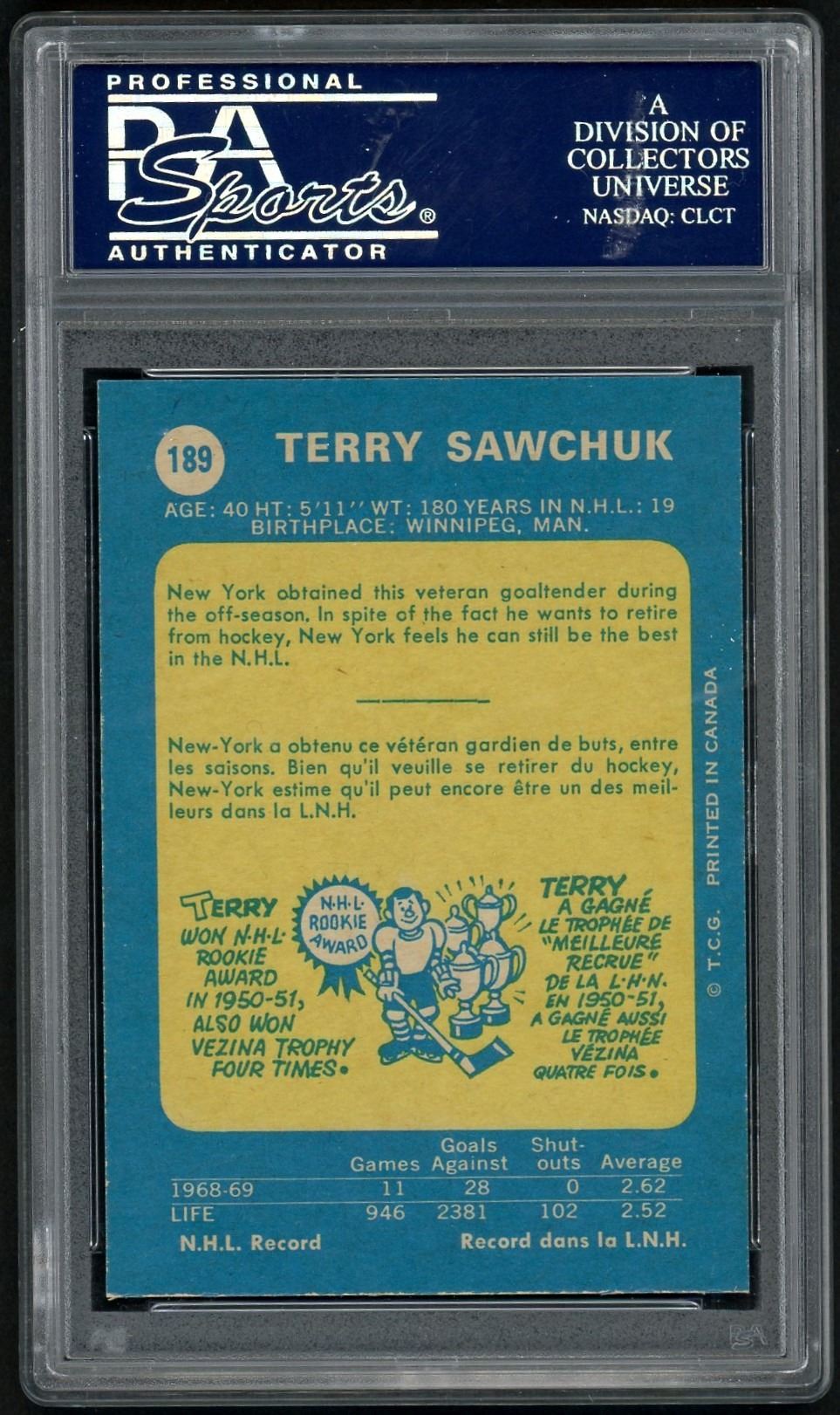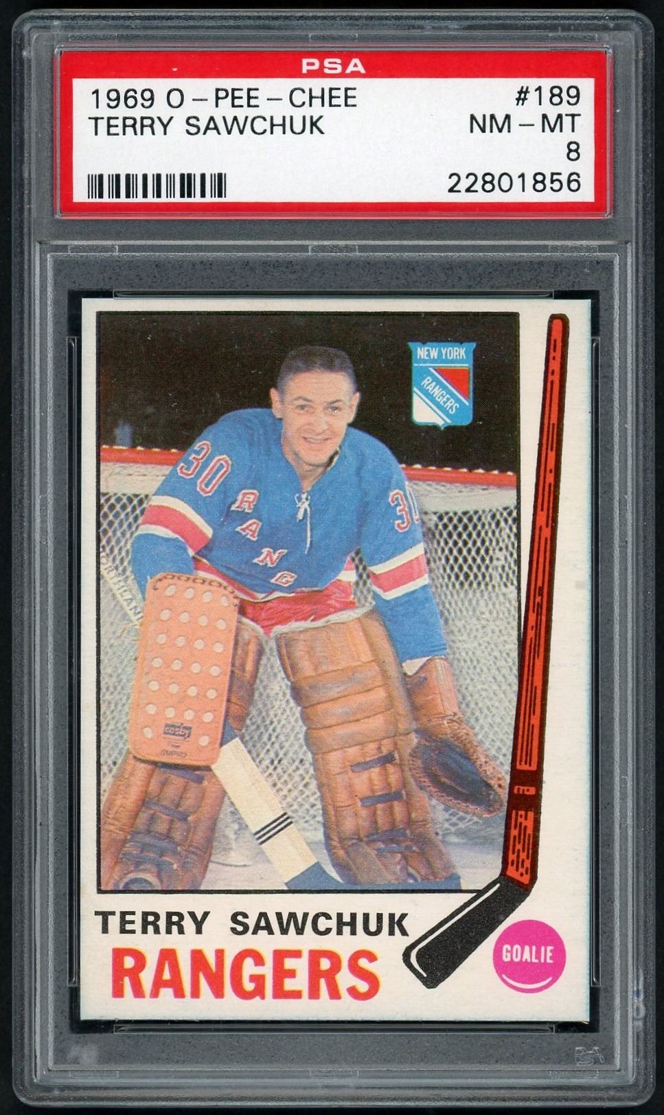 A gem of a card, late in the auction! A stunning '69 O-Pee-Chee Sawchuk, in near perfect condition, graded 8 NM-MT by PSA!
