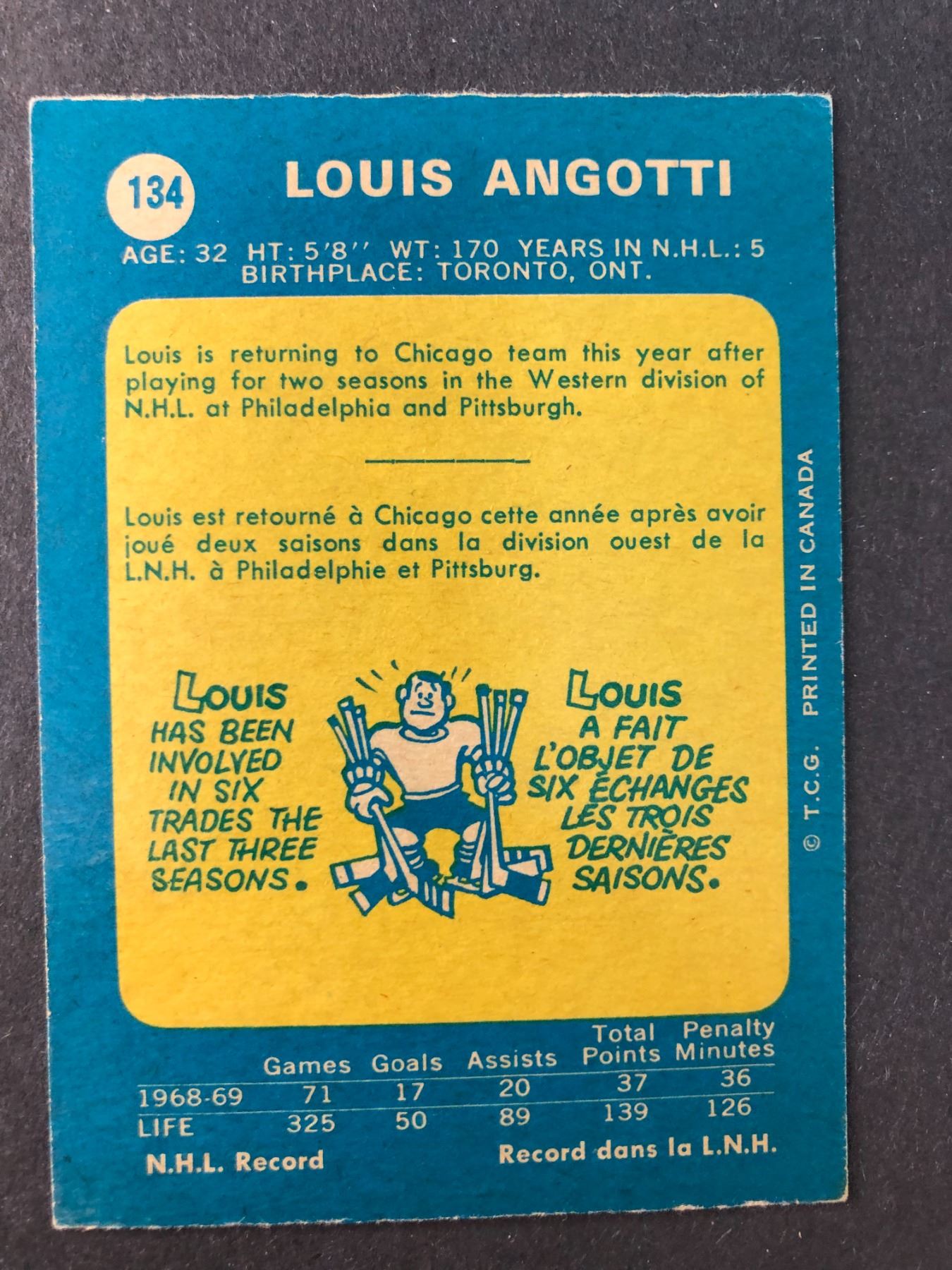 1969-70 OPC - Louis Angotti - Black Hawks