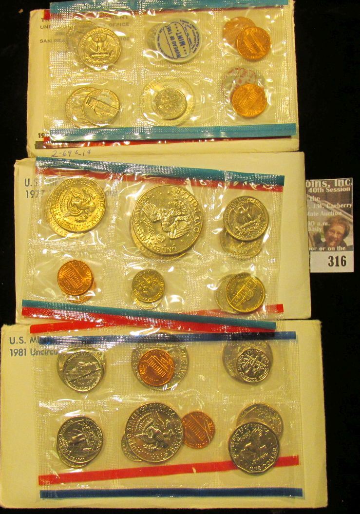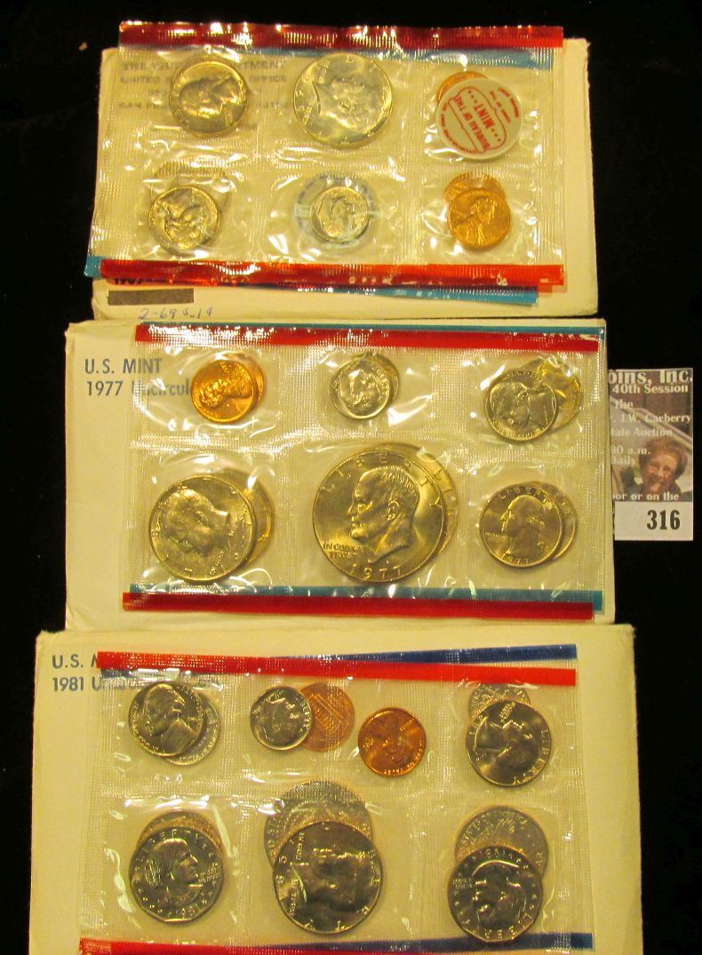 1969, 77, & 81 U.S. Mint Sets. All original as issued. CDN bid is $16.00