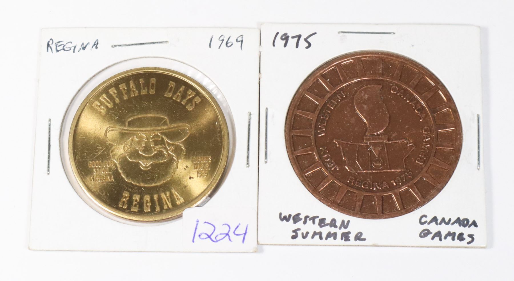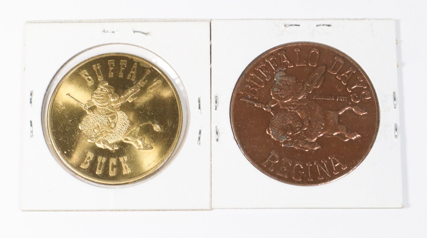 1969 AND 1975 REGINA BUFFALO DAYS TOKENS