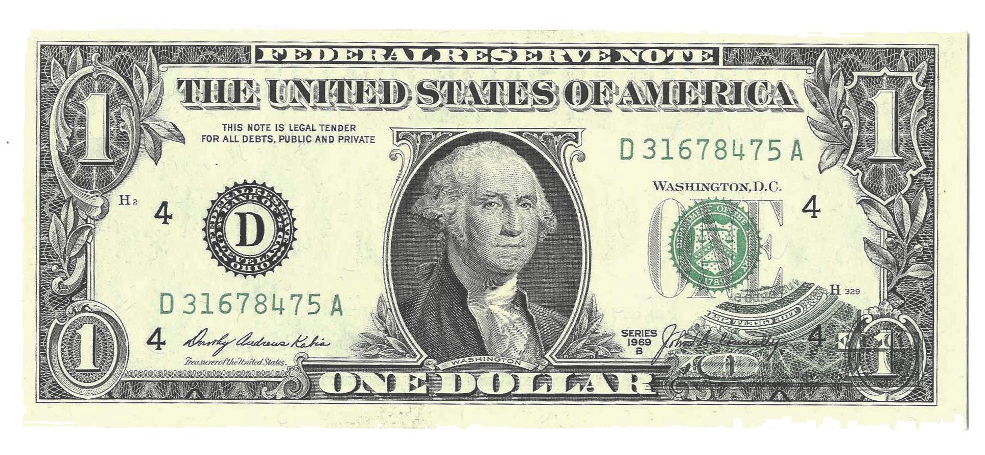 $1 Federal Reserve Error Note -- Series 1969-B -- Ink Transfer Error to Front Lower Right