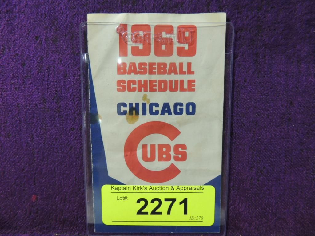 CHICAGO CUBS 1969 BASEBALL SCHEDULE. AS SHOWN. SEE PHTO FOR MORE DETAILS. SOME STAINS IN SLEEVE.