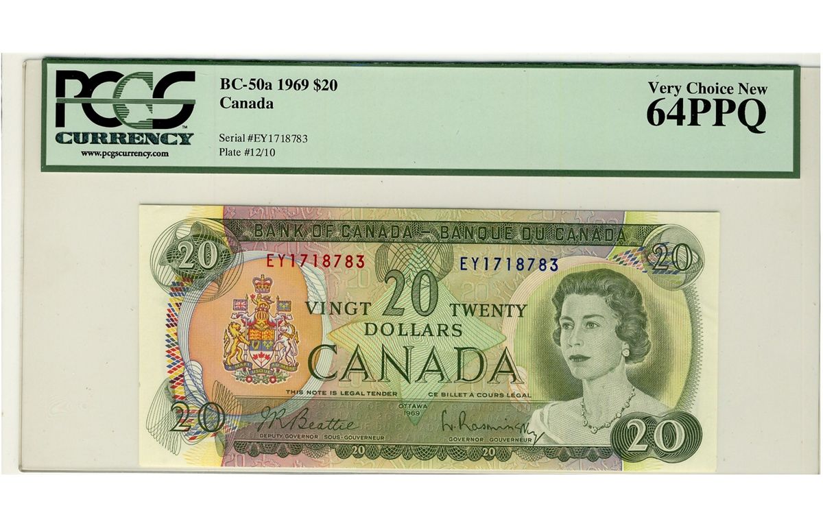 1969 Bank of Canada; $20 BC-50a #EY1718783 PCGS CH UNC64PPQ.