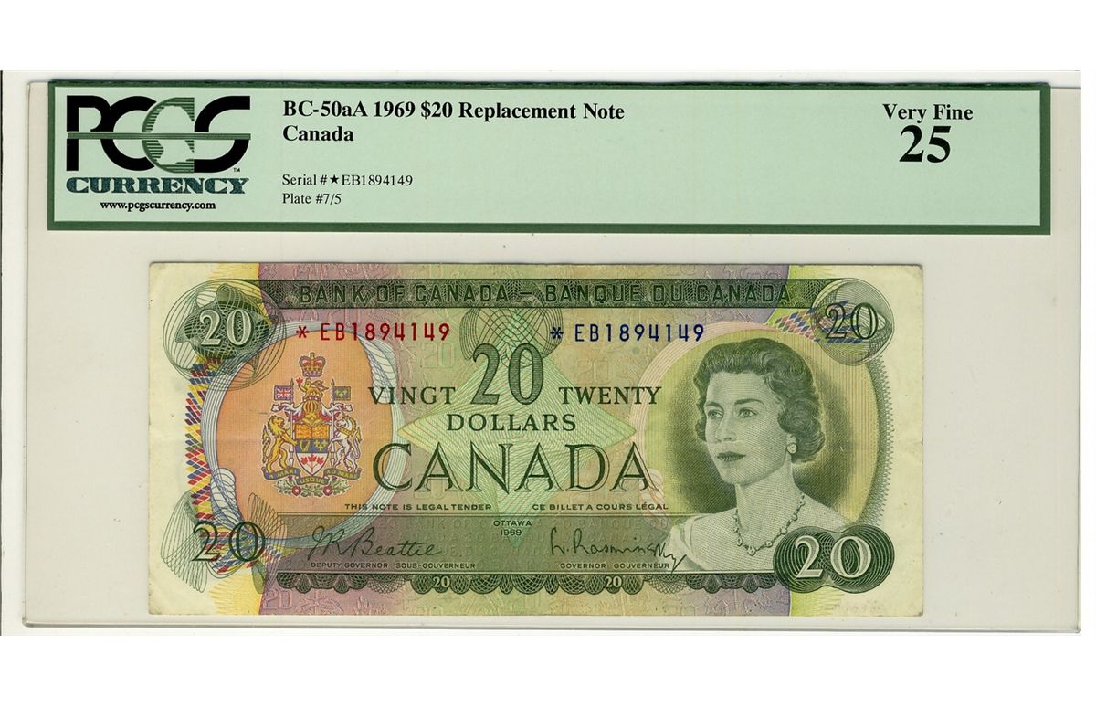 1969 Bank of Canada; $20 BC-50aA #*EB1894149 PCGS VF25