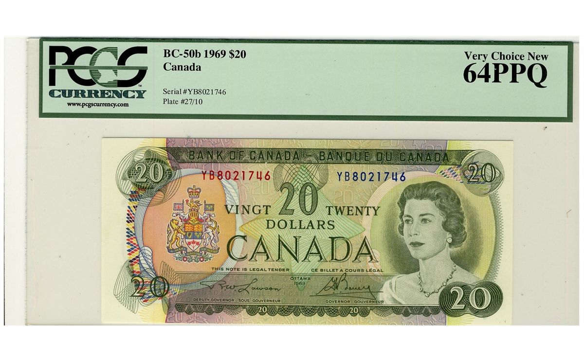 1969 Bank of Canada; $20 BC-50b #YB8021746 PCGS CH UNC64PPQ.