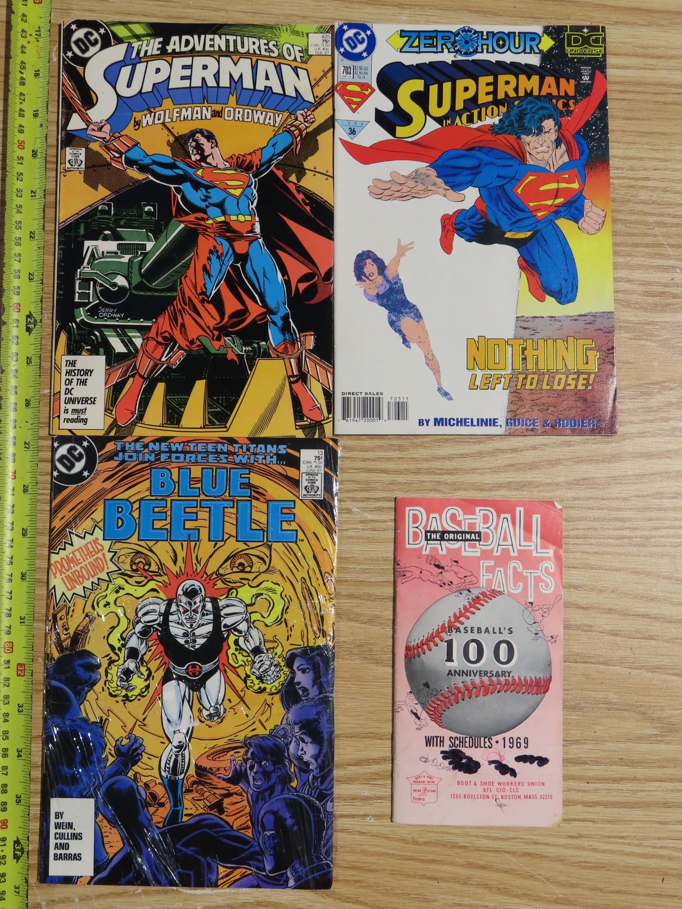1969 Baseball Facts Booklet, (2) Comics Blue Beetle, Superman