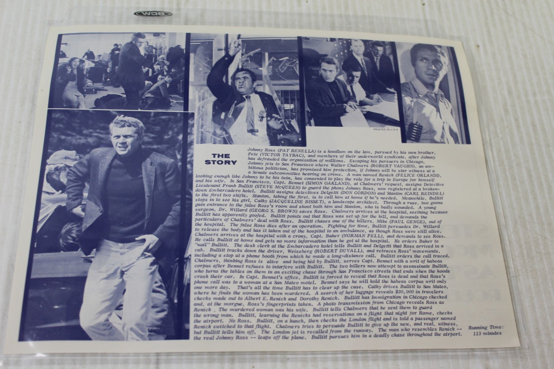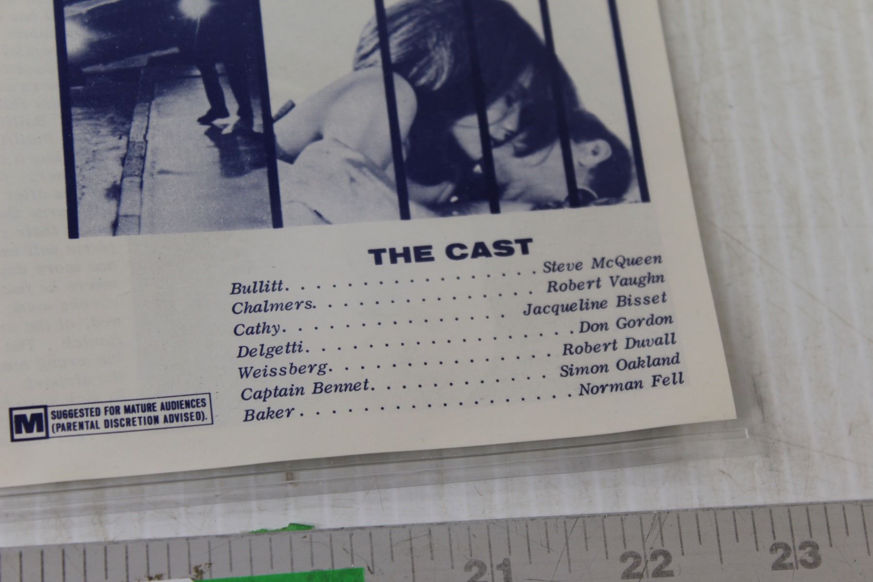 1969 "Bullitt" Movie Synopsis Sheet - 8 1/2" x 11" Consigner Says Mint Condition
