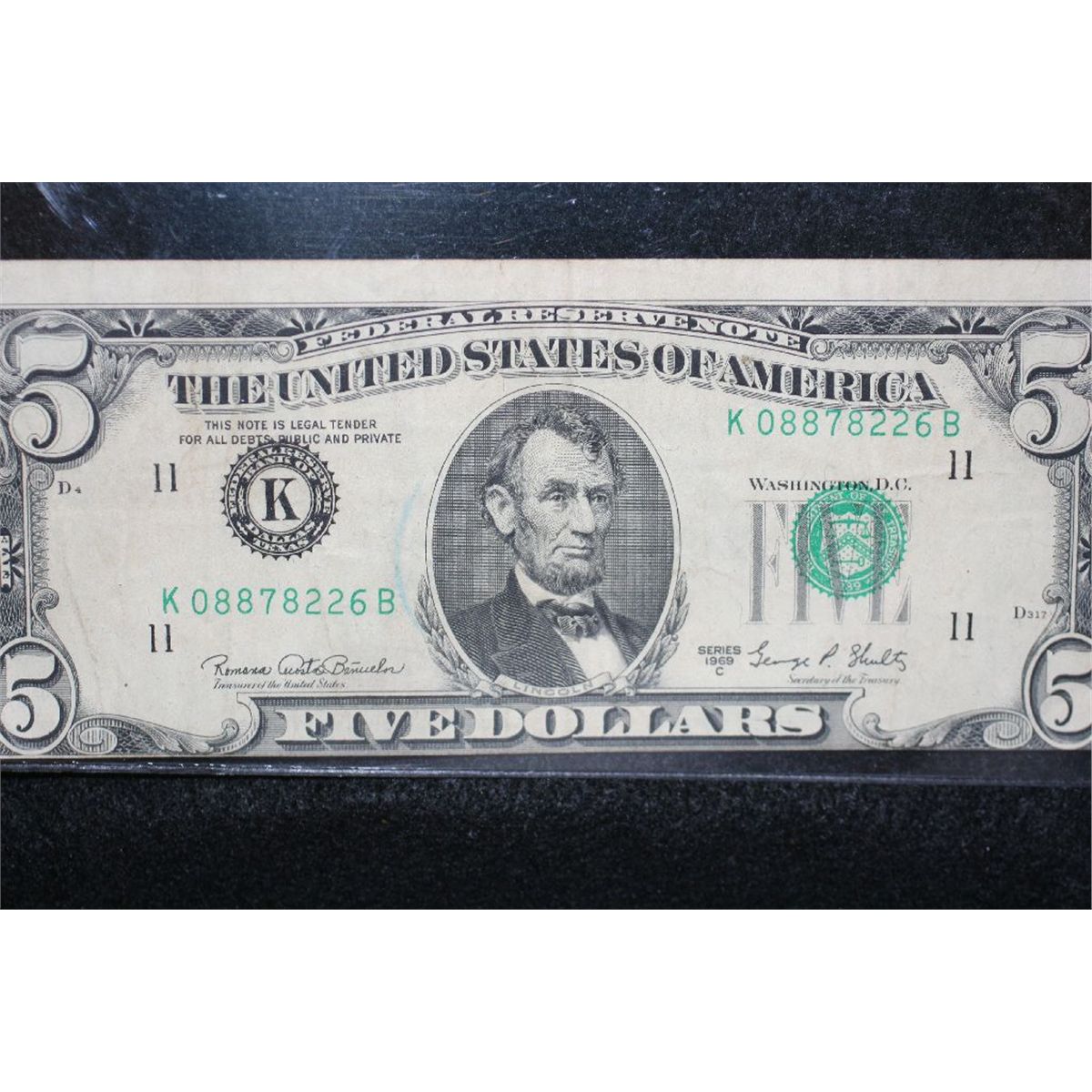 1969-C US Federal Reserve Note $5, Dallas Texas Reserve, #K08878226B, front & back off center