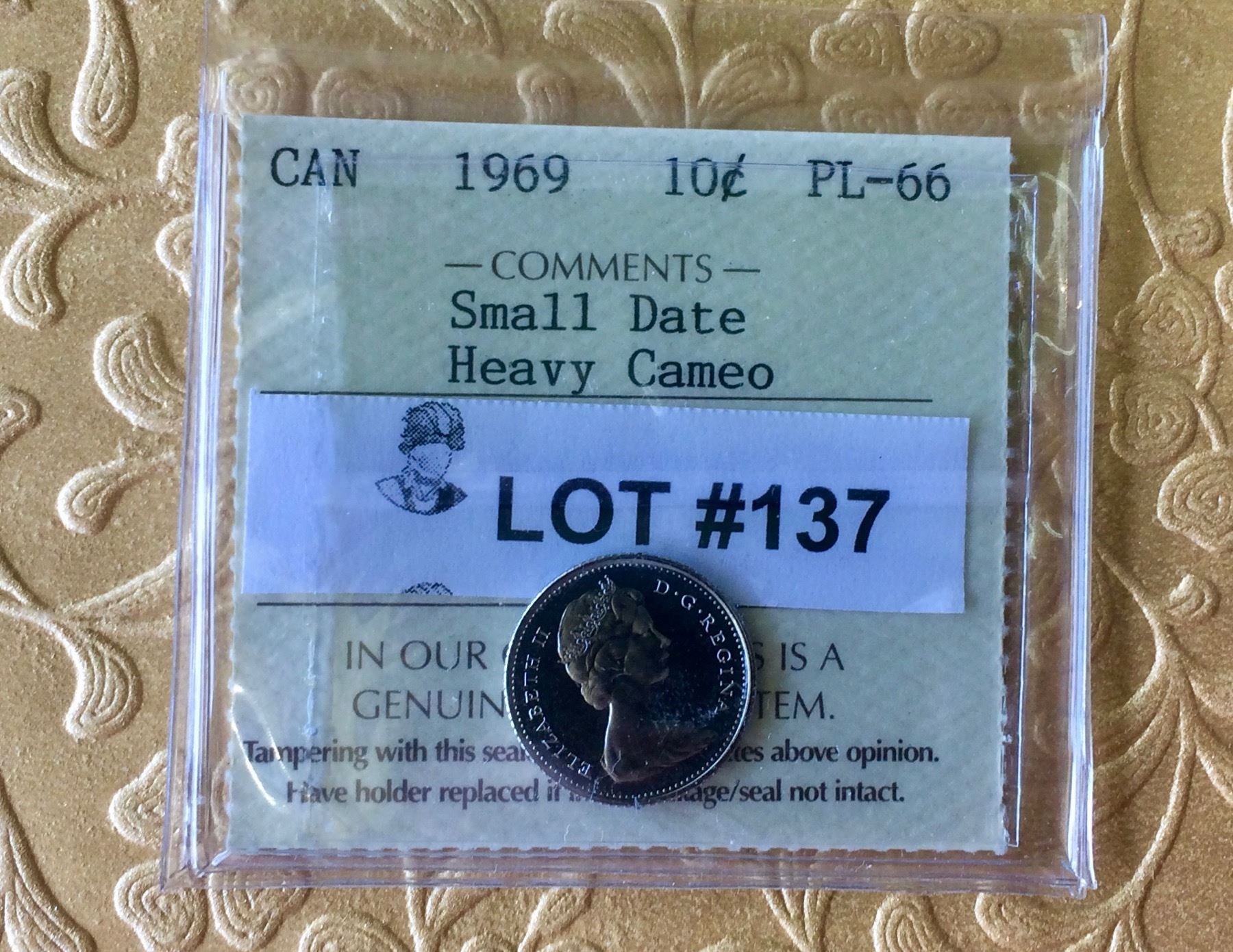 1969 CANADA 10 CENTS PL-66 ICCS SMALL DATE-HEAVY CAMEO