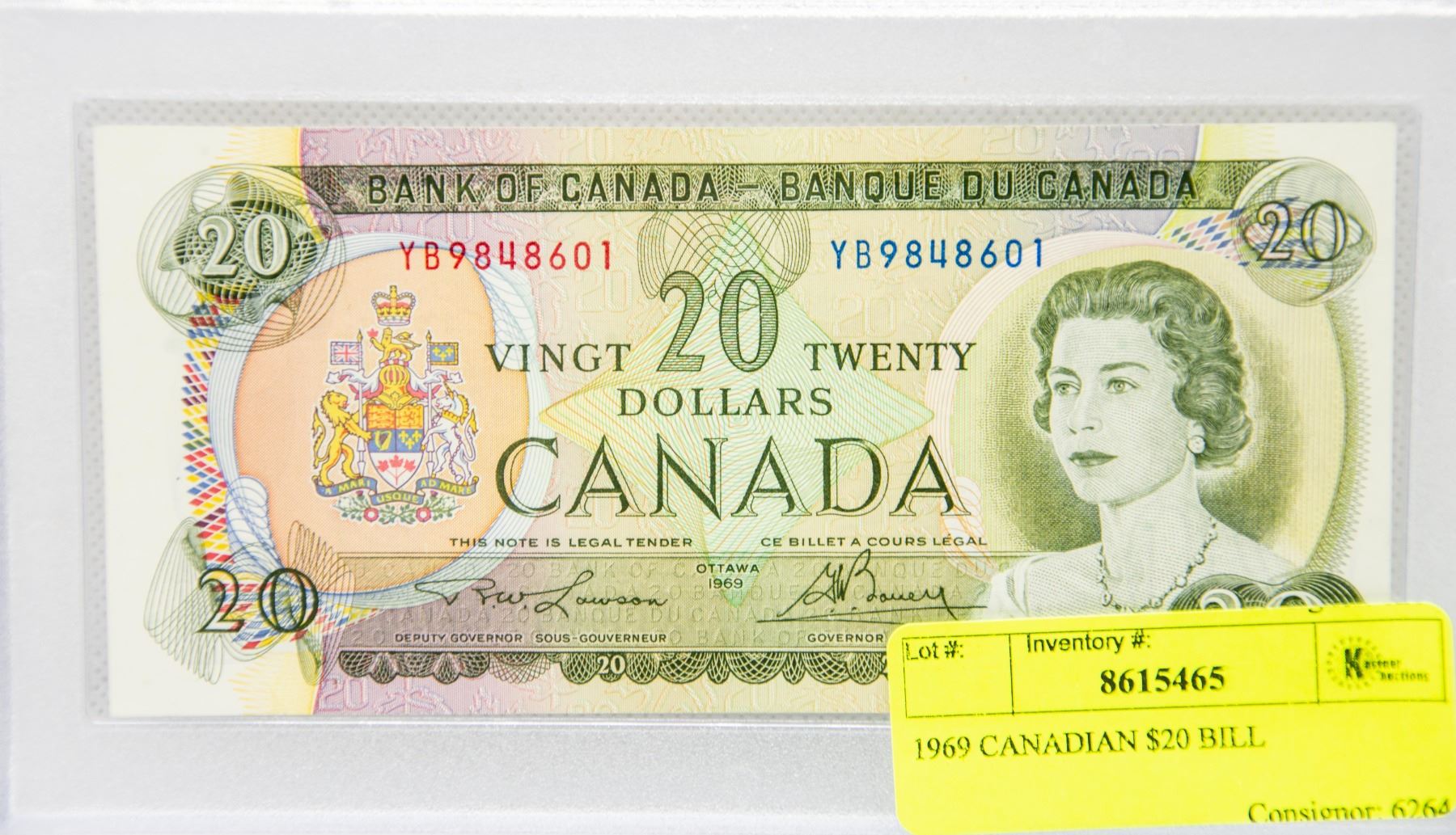 1969 CANADIAN $20 BILL IN HARDCASE