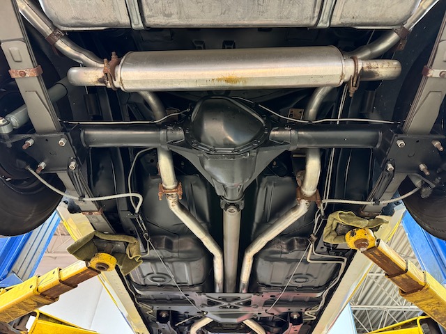 Original steel styled rims with SS outer rings and correct center caps wrapped in goodyear polyglass F70-14 tires