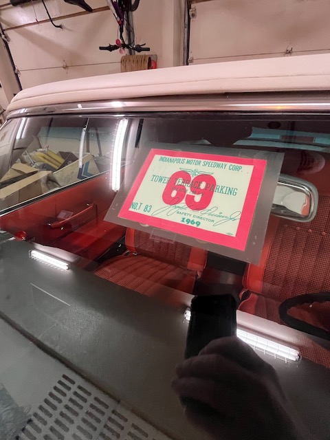 Car comes with extensive documentation including parking passes from the Indianapolis motor speedway; tower terrace parking in 1969