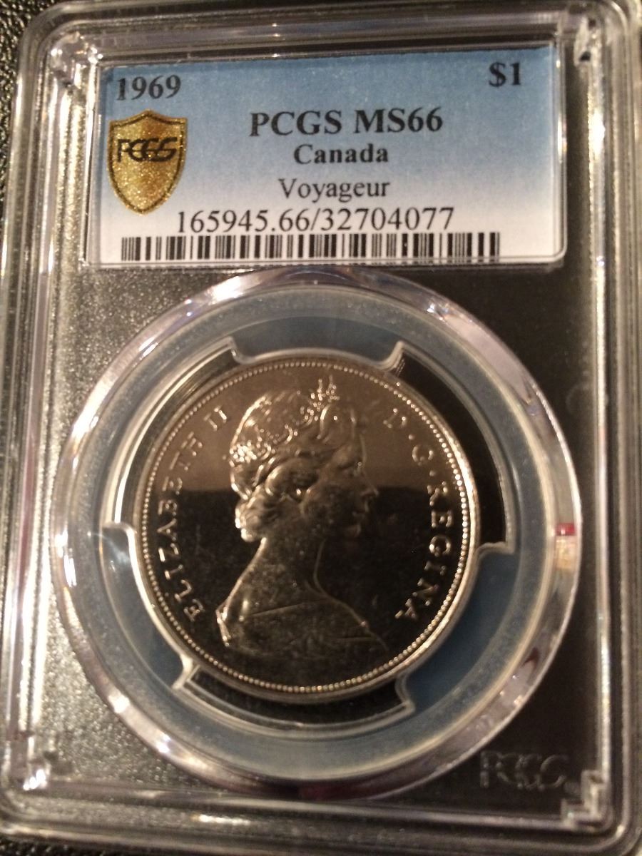 1969 Canada 1 Dollar Voyageur Regular Strike - PCGS MS-66 - 32704077 (Pop 2 !) Has Reserve