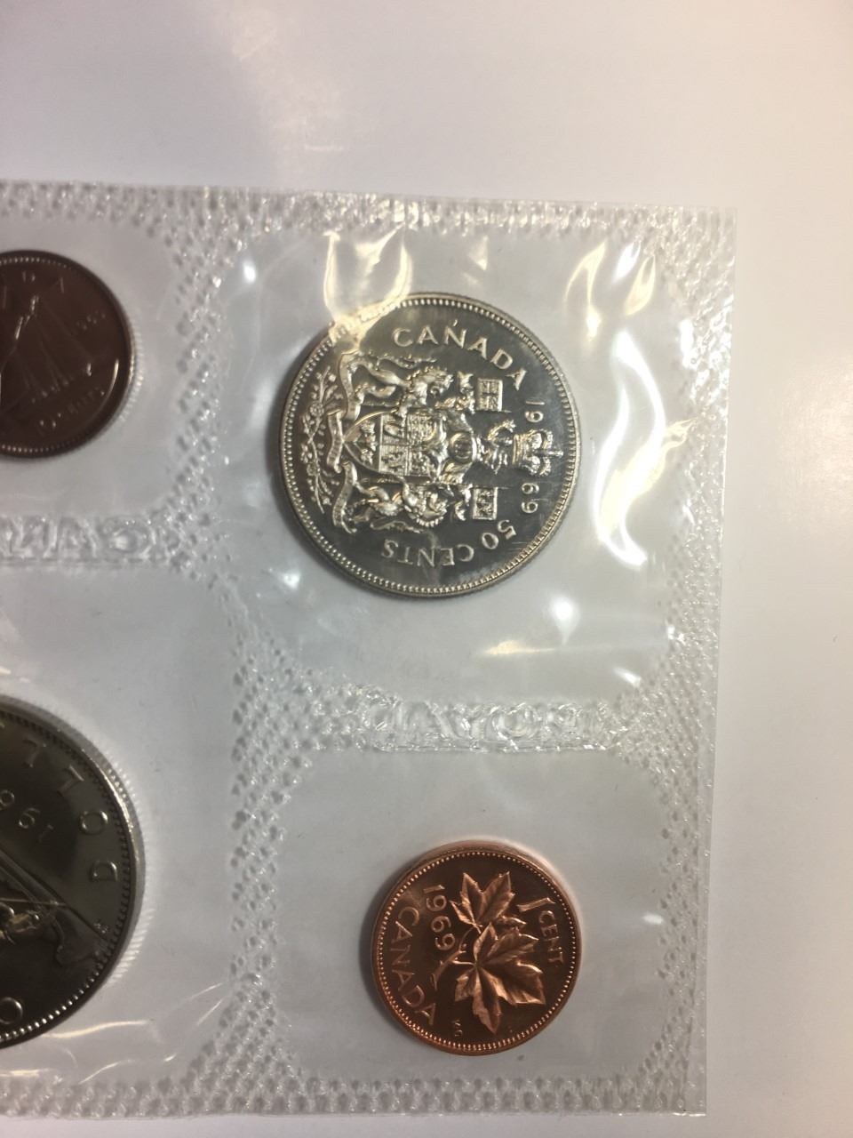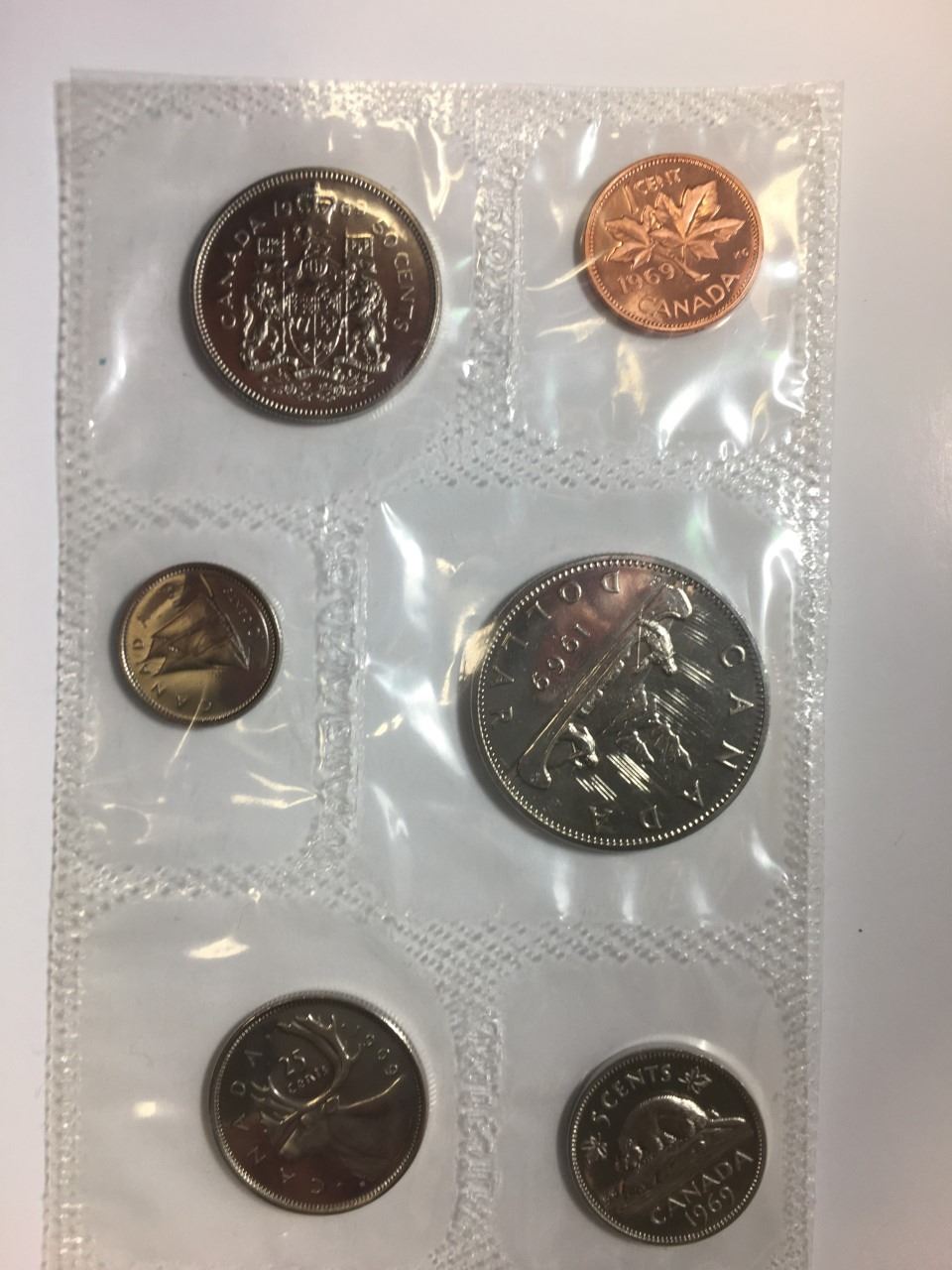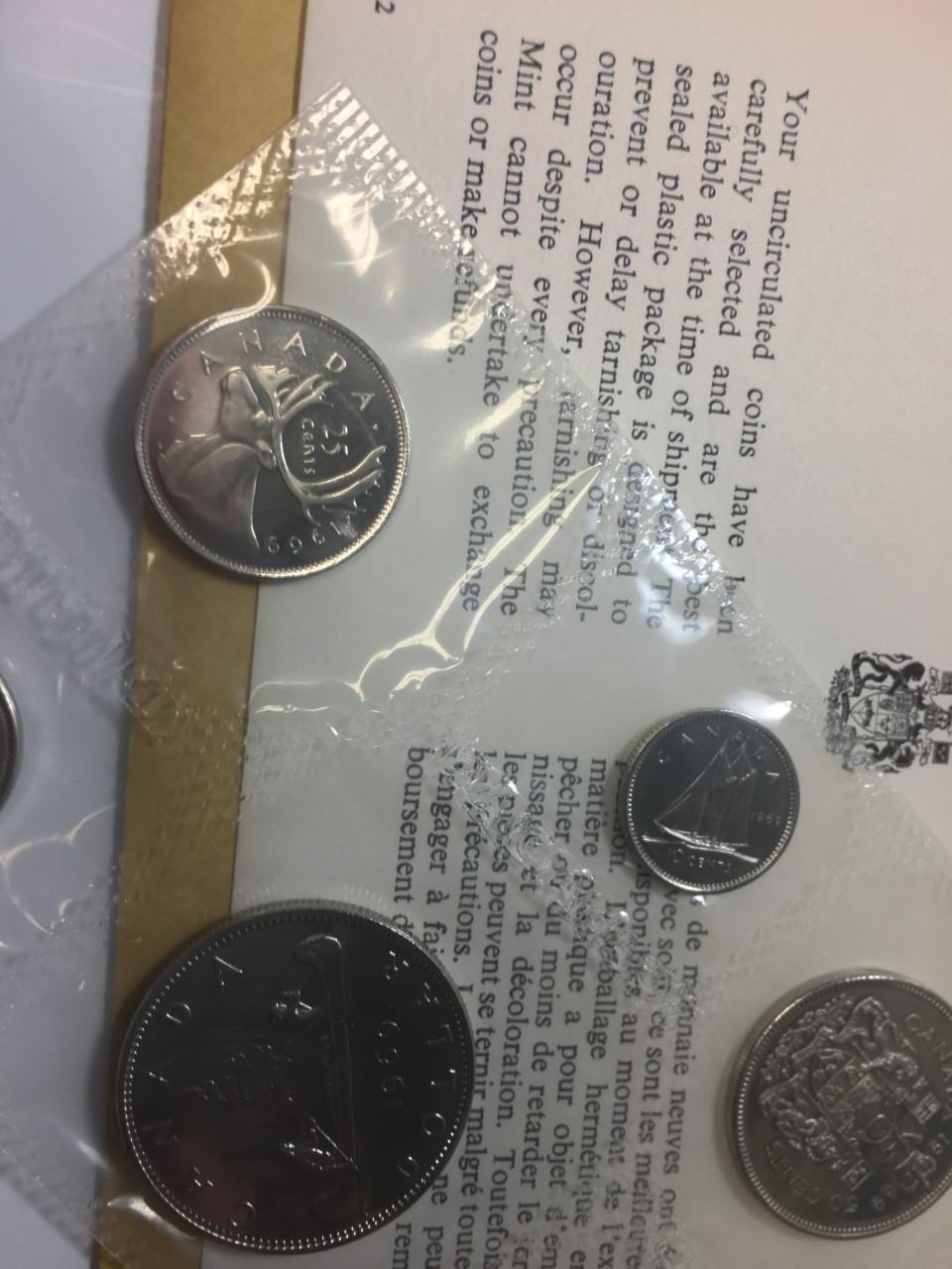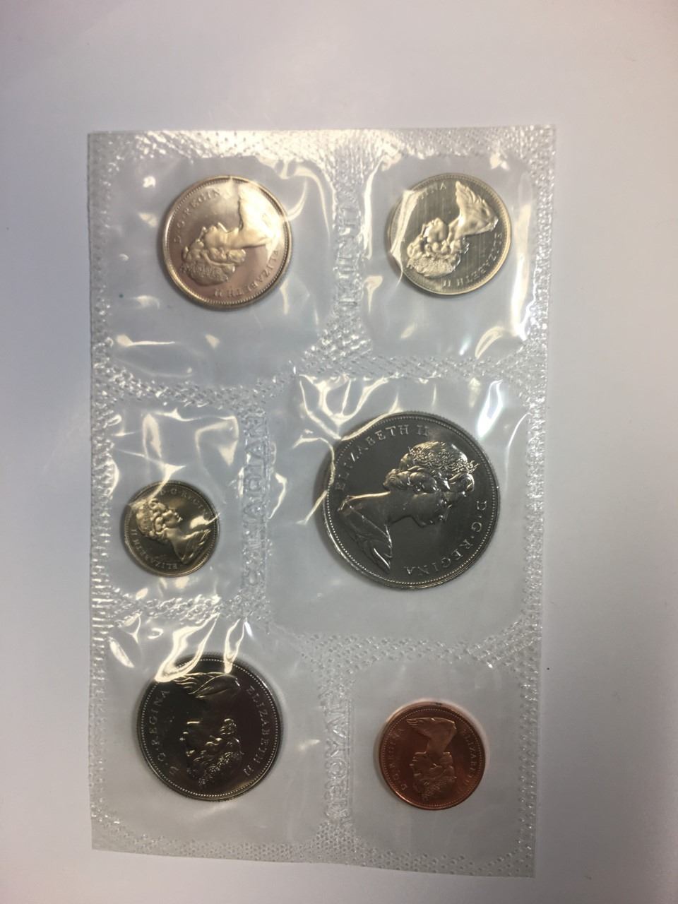 This 6-coin set is sealed in its original pliofilm transparent plastic, presented in an envelope along with bilingual Mint-issued card.