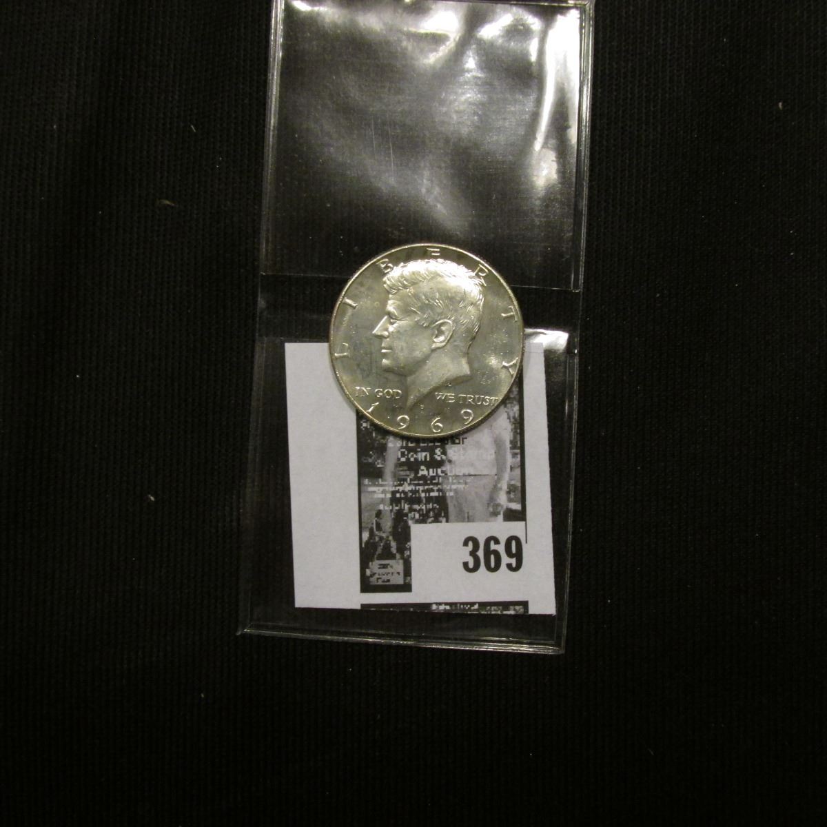 1969 D Double Die Reverse Silver Kennedy Half Dollar, (light hub doubling on the reverse).