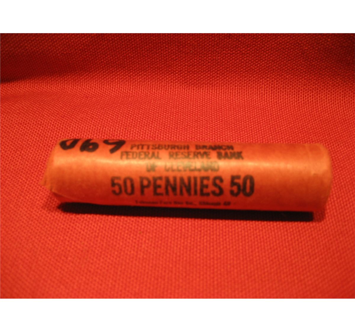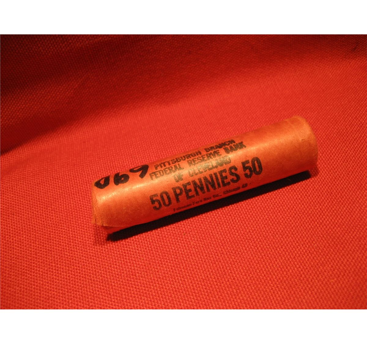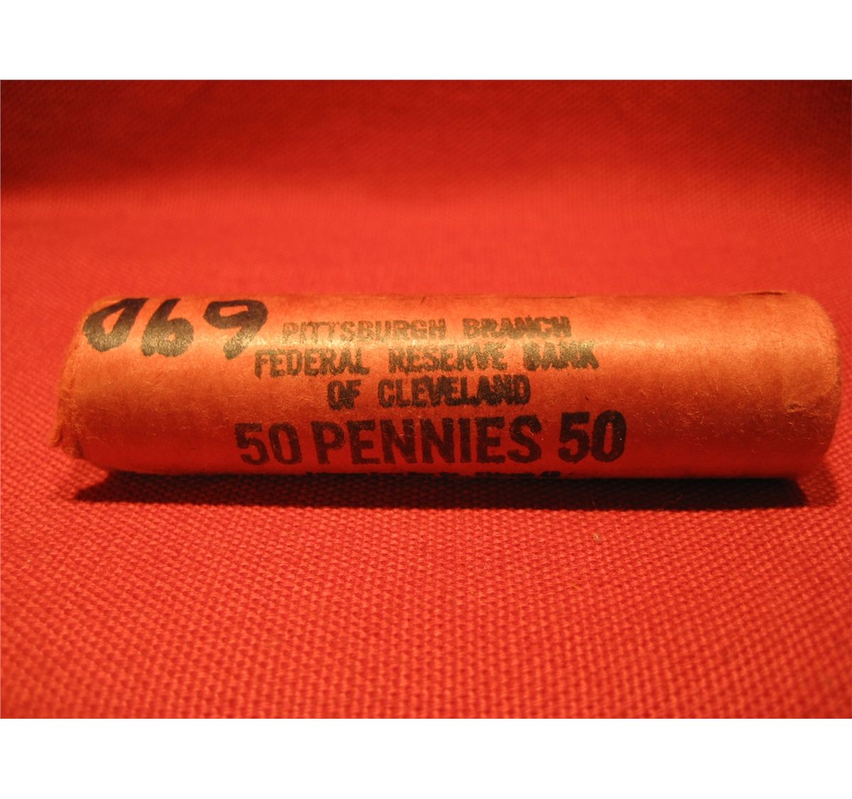 (1) 1969- D PITTSBURGH BRANCH LINCOLN CENT FULL UNOPENED FEDERAL RESERVE BANK OF CLEVELAND *** ROLL 50 PENNIES 50 ***