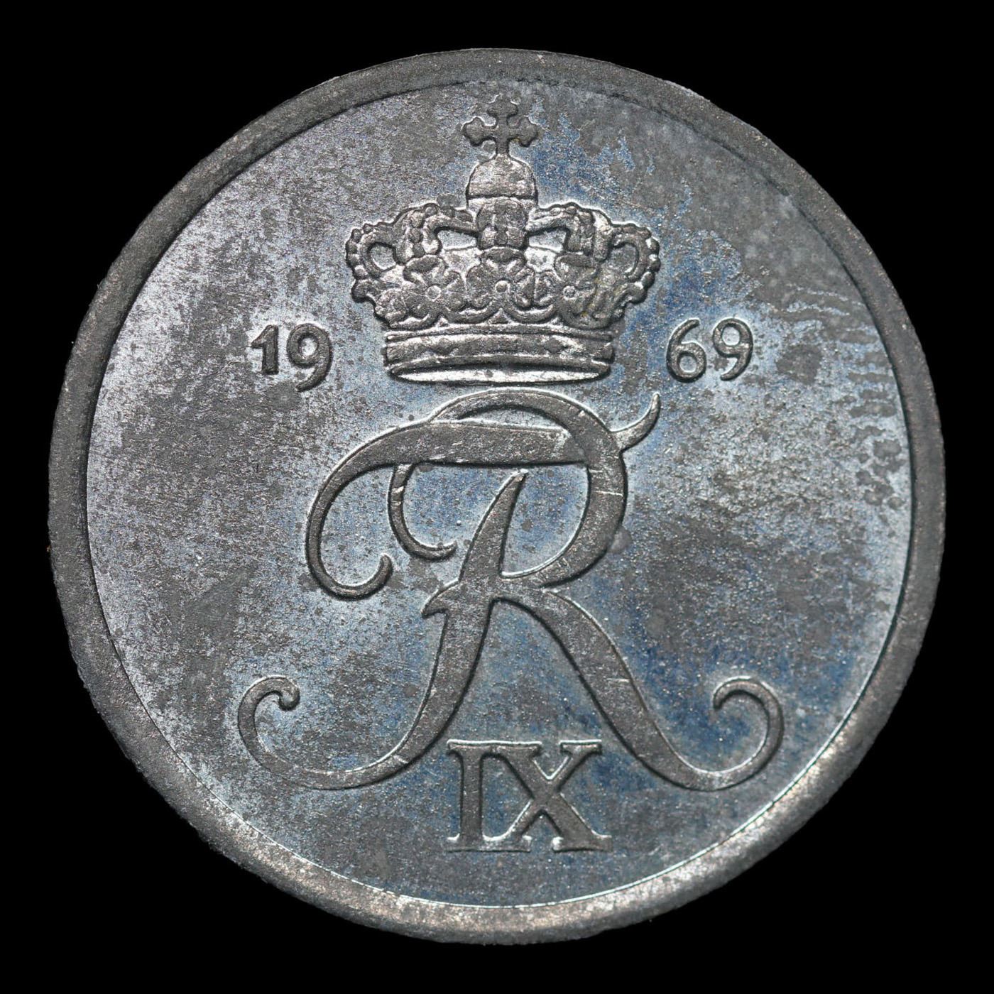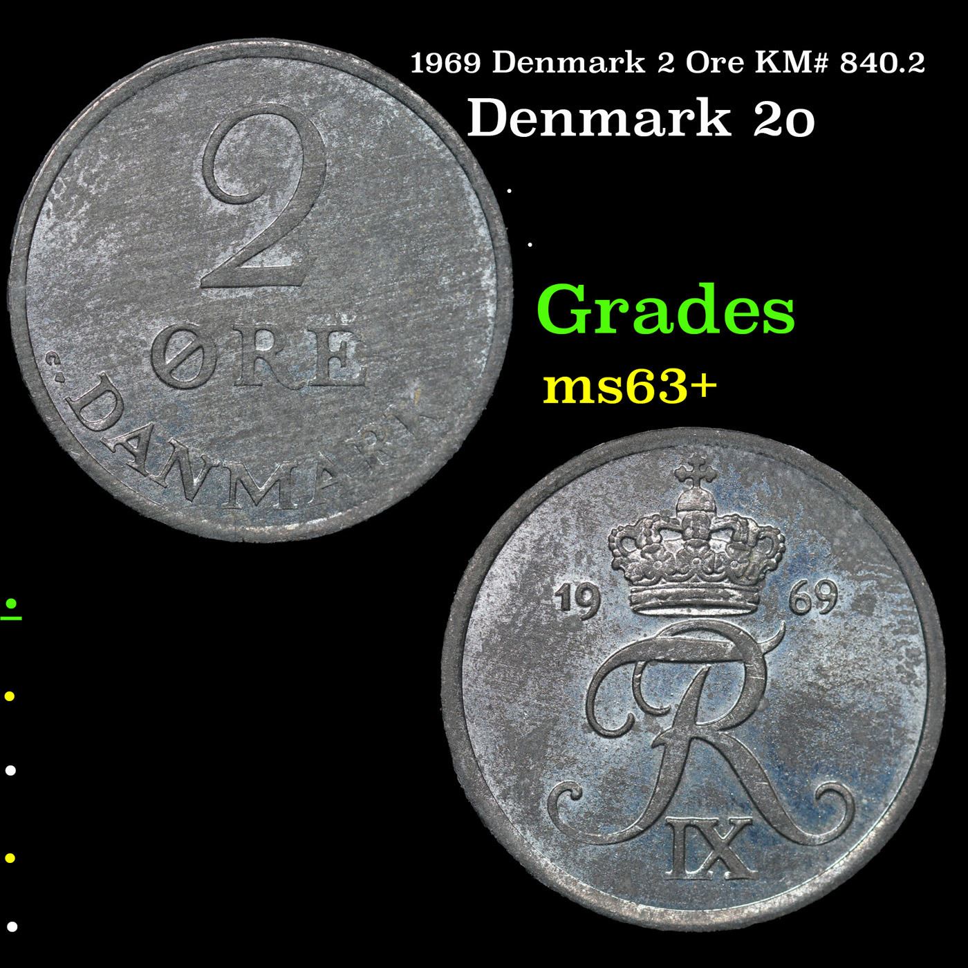 1969 Denmark 2 Ore KM# 840.2 Grades Select+ Unc.
