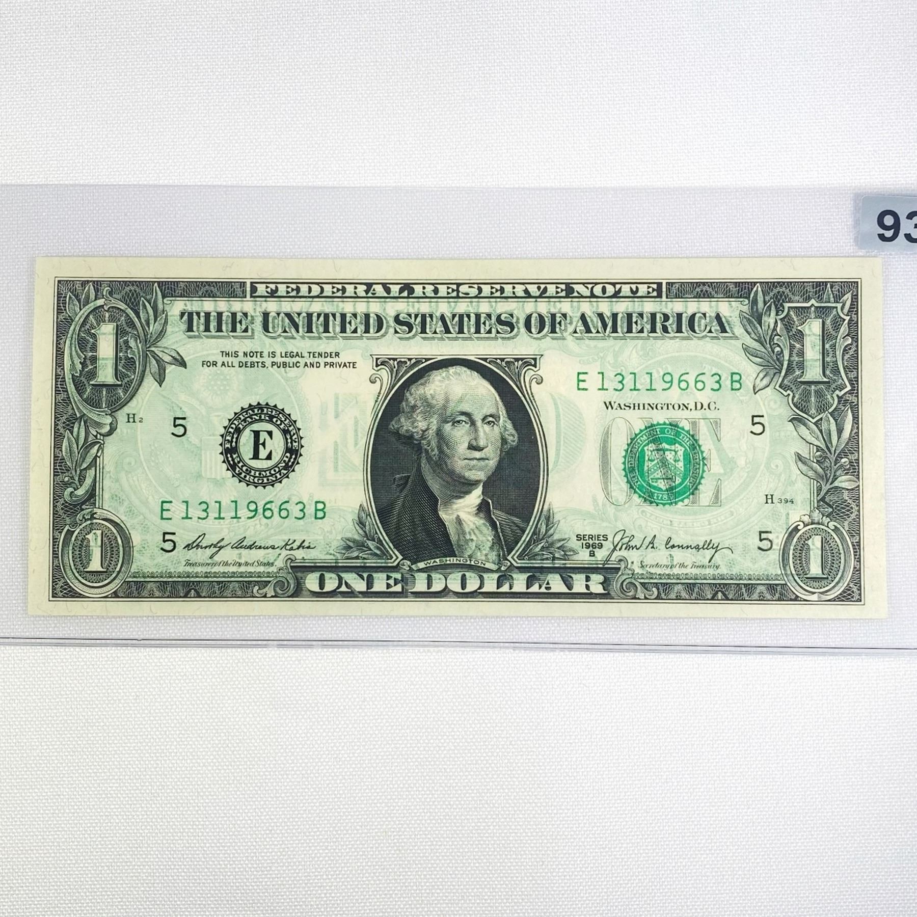 1969 ERROR Full Offset $1 Fed Reserve Note -