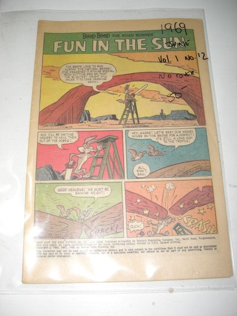 1969 EXTREMELY RARE *ROAD RUNNER* JUNE VOL.1 NO.12 COMIC BOOK VALUE $50.00-NO COVER!! COMIC CAME OUT OF ESTATE!! ***Coin, Currency & All Items Listed in this auction - Grades, Conditions and Values are not Safe Deposit Coins LLC Responsibilty. Grades, Condition and Values are determined by Consigner(s) & Buyers ONLY