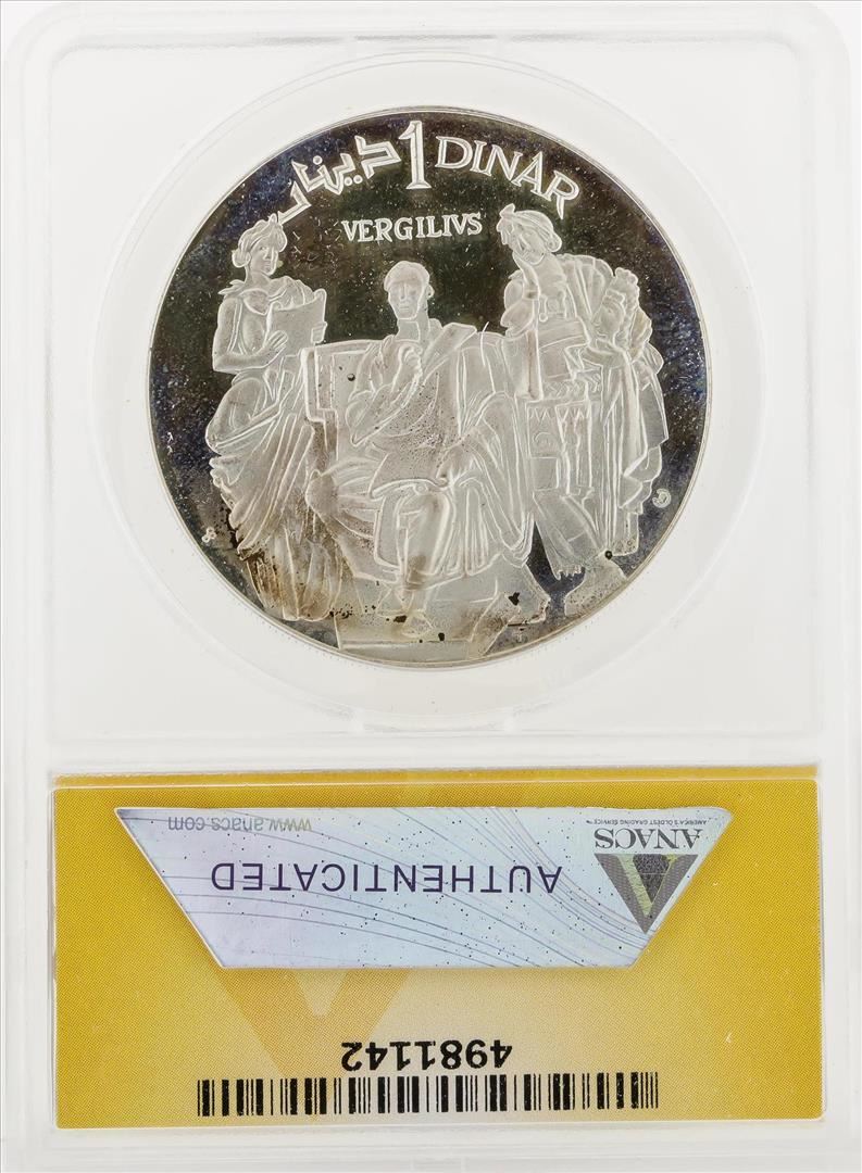 1969-FM-NI 1 Dinar Tunisia Proof Virgil Coin ANACS PF68 DCAM