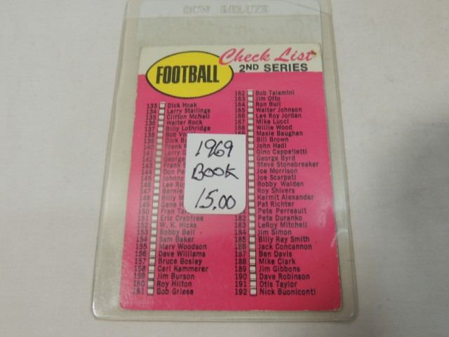 1969 FOOTBALL CARD TOPPS CHECKLIST CLEAN