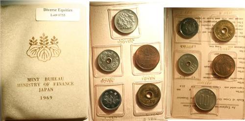 Scarce set, very low mintage and extremely hard to find. Choice original 5 coin set in white with gold letter leatherette presentation folder.
