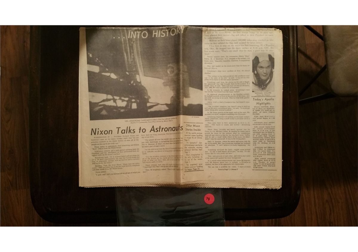 This is a must have! It’s a 1969 Newspaper showing U.S. Puts 1st man on moon. And Nixon talks to Astronauts!