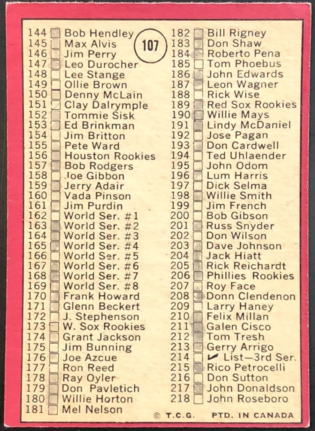 Card #107, some faint ink OPC, vintage, MLB, baseball, hall of fame