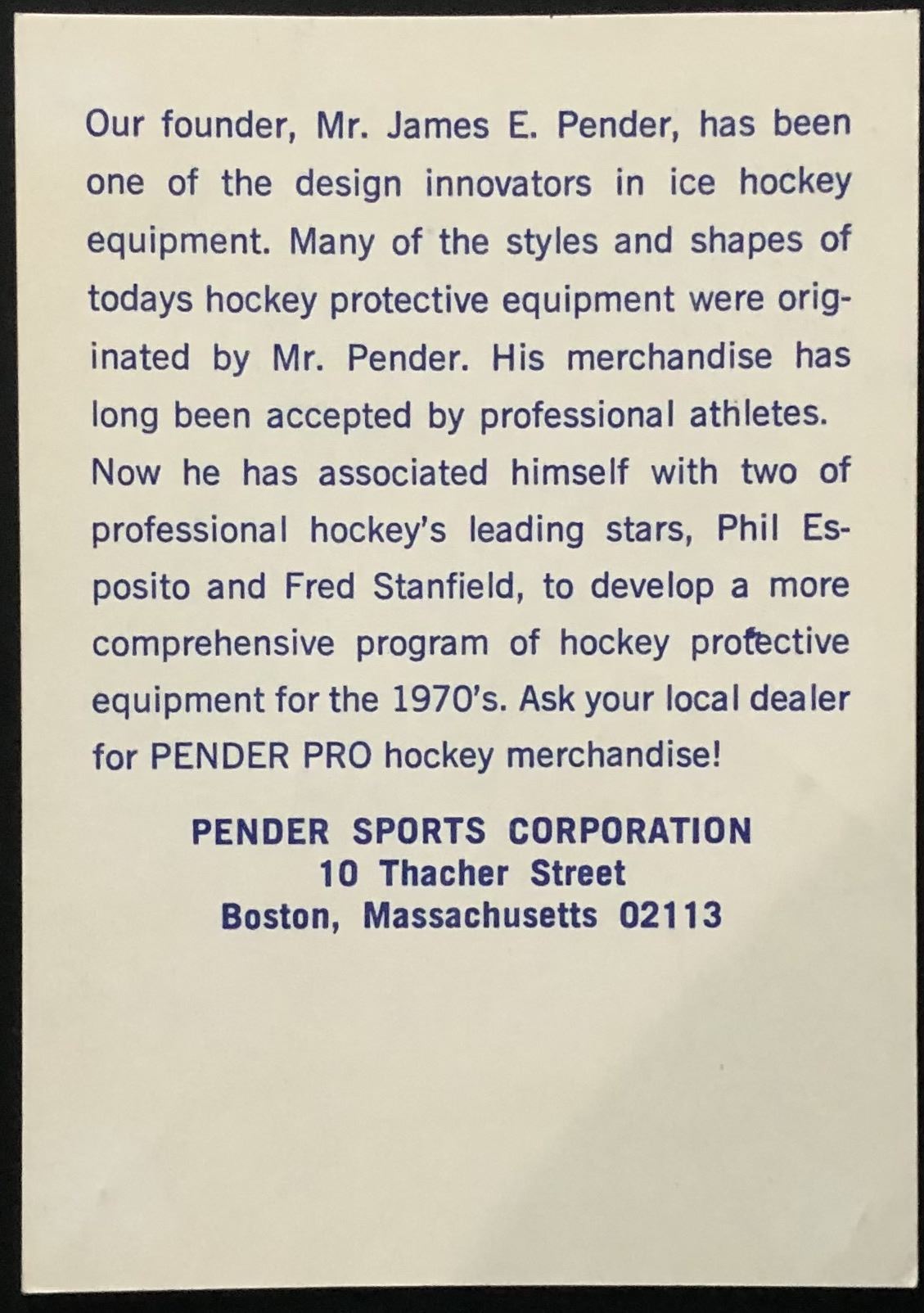 1969 PHIL ESPOSITO (HOF) / FRED STANFIELD POSTCARD