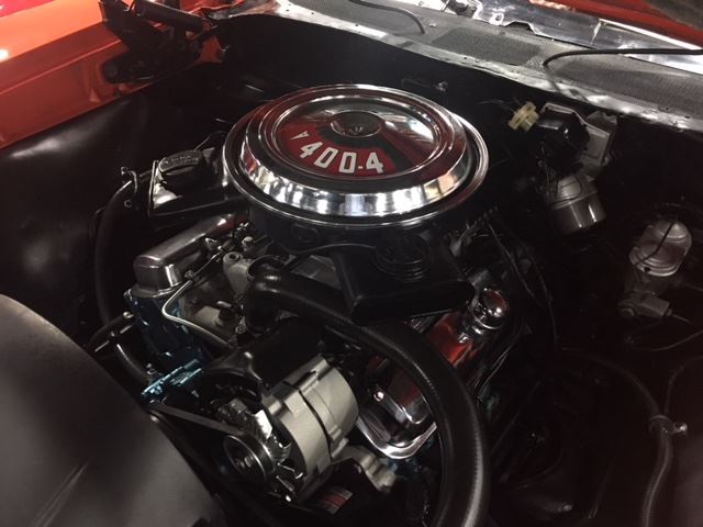 400, 4 barrel, 4 speed with hurst shifter. Legendary carousel red paint with buckets, console, rear wing and power top. Factory PMD rally wheels with T.A. radials. Fully functional iconic hideaway headlight option. Correct judge trim package. Frame on restoration. Awesome Car!