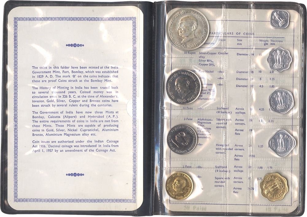 1969 Proof Set of Gandhi Centenary of Bombay Mint.