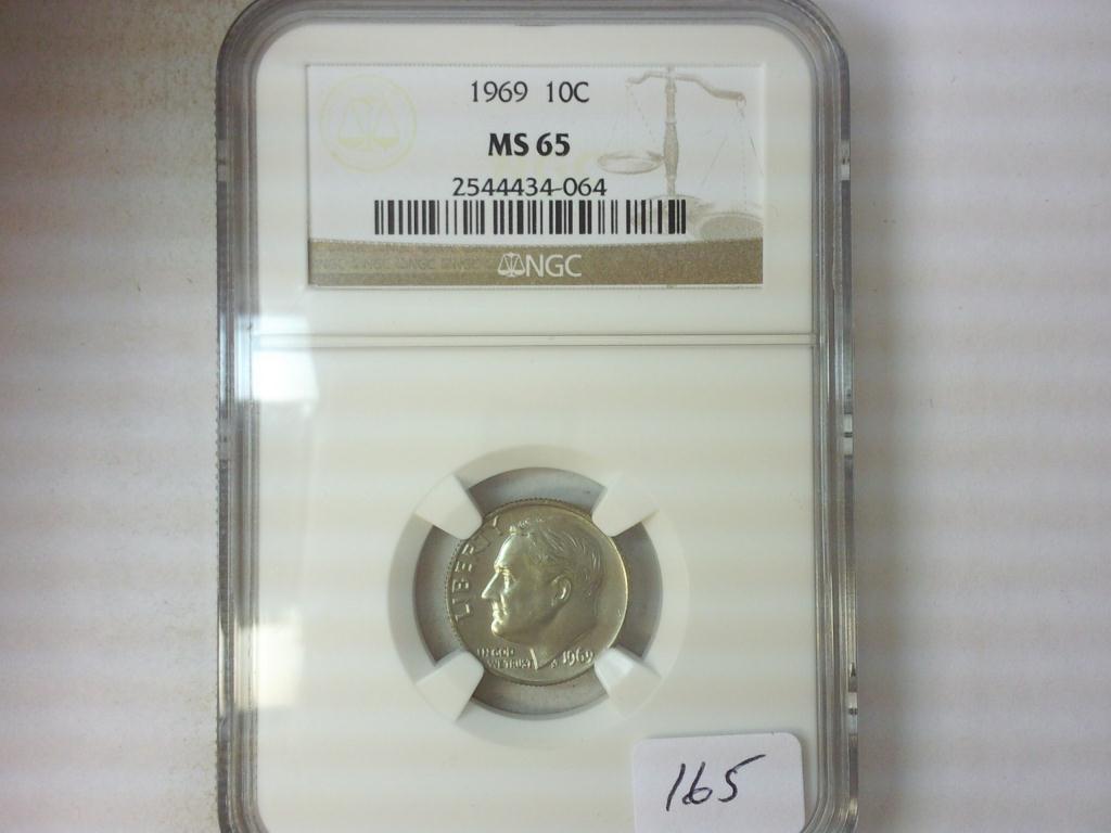 1969 ROOSEVELT DIME NGC MS65