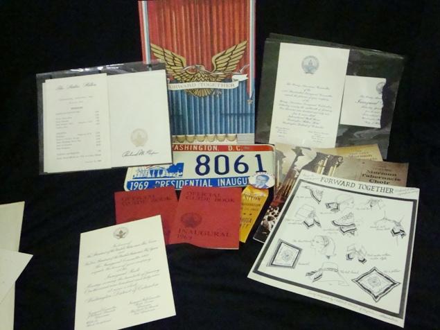 Eclectic collection of programs, match book covers, concert programs, invitations, etc. All associated with the 1969 Inaugural of Richard Nixon. This type of memorabilia could only be received in one attended the gala.