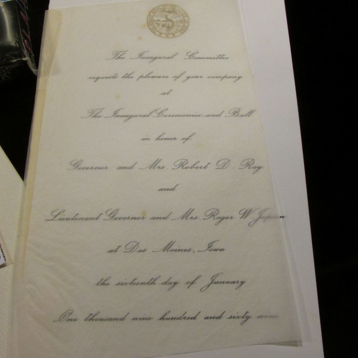 1969 Robert D. Ray Inaugural Ceremonies State of Iowa Program & Invitation; & an Iowa Souvenir Deck of playing cards.