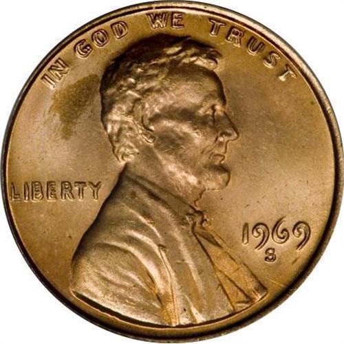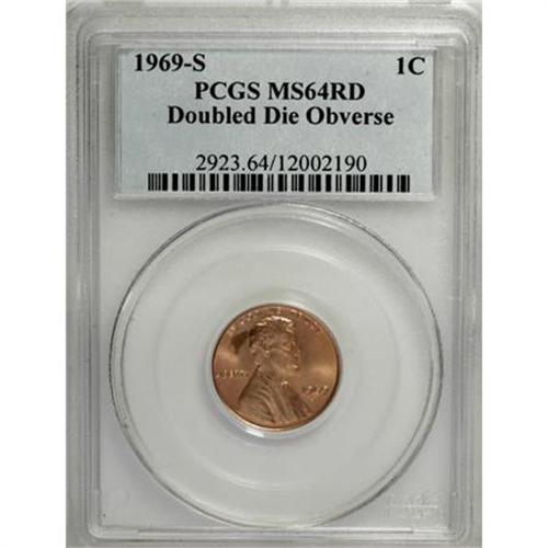 <B>1969-S 1C Doubled Die MS64 Red PCGS.</B></I> FS-028. In <I>The Cherrypickers' Guide to Rare Die Varieties</B></I>, Bill Fivaz and J.T. Stanton use a system of stars to assess demand for different varieties, ranging from one star for low-demand, minor variants to a stated high of five stars for bold and popular oddities such as the 1955 doubled die cent. The 1969-S Doubled Die Obverse listing shows six stars.<BR> This important, interesting, and generally unavailable variety has one of the most surprising backgrounds in 20th century American numismatics. As described in several publications, counterfeit doubled die cents dated 1969 had appeared, and government agents confiscated any examples it came across. The legitimate 1969-S doubled die pieces were caught up in this dragnet; Fivaz and Stanton report that the coins were later authenticated by the Mint and returned, while Lange's <I>The Complete Guide to Lincoln Cents</B></I> states that the Mint destroyed at least a few of the S-mint coins. That early excitement greatly increased the notoriety of the 1969-S doubled die coins, though the population of survivors remains excessively low.<BR> The piece offered here, however, has no such story of confiscation and redemption. In fact, its history is essentially blank until October 3, 2007, when collector Michael Tremonti discovered the coin in a heretofore-unsearched roll of 1969-S cents. As related by Ken Potter in a report for the October 29, 2007 edition of <I>Coin World</B></I>, the noted numismatist was understandably skeptical: " ... I just assumed that his find was one of the exceedingly common examples of strike doubling found on this date. ... I advised [Tremonti] of this, but he shrugged it off as not being what he found."<BR> While Potter agreed to examine the coin, he was not expecting to find an actual doubled die: "Even though [Tremonti] sounded like he knew what he was talking about, I was still prepared to find an example of strike doubling. To my surprise, what I beheld was a Brilliant Uncirculated example of the 1969-S Lincoln, Doubled Die cent."<BR> Interest in the 1969-S Doubled Die cents has increased dramatically in recent years, and prices have skyrocketed in tandem. A recent sale by Bowers and Merena included an MS64 Red and Brown example, which sold for $85,100, the current high price for this issue. Collector and dealer speculation has suggested that this representative might set a new record at auction. Among the authorities who have brought up the possibility is David Hall, one of the co-founders of certification service PCGS. His commentary, as printed in the November 13, 2007 edition of <I>Numismatic News</B></I>: "I was totally amazed that this coin could turn up out of nowhere. The coin is completely original and full mint red. ... What an incredible find! This could be a six-figure coin."<BR> The shining surfaces of this important cent are fresh copper-orange with a triangular area of peach-umber behind Lincoln's head. The strike is crisp, and the peripheral elements of the obverse show this variant's characteristic doubling, with the effect most prominent at LIBERTY and the date. Though a handful of marks are present in the fields, the devices are attractively preserved, and the overall effect is tantalizingly close to an even finer designation.<BR> The combined certified populations of NGC and PCGS show just three Choice 1969-S Doubled Die cents as the highest-graded examples, all of which were certified by the latter firm (12/07). One was graded as Red and Brown, while the other two (including the present piece) were graded as Red. This recent discovery, at the acme of desirability for this challenging doubled die, presents an important opportunity for the series specialist.<BR><BR><B>Coin Engraver:</B> Victor D. Brenner<BR><BR><b>Shipping:</b> Coins & Currency (<a target="_blank" href="http://www.heritageauctions.com/common/shipping.php">view shipping information</a>)