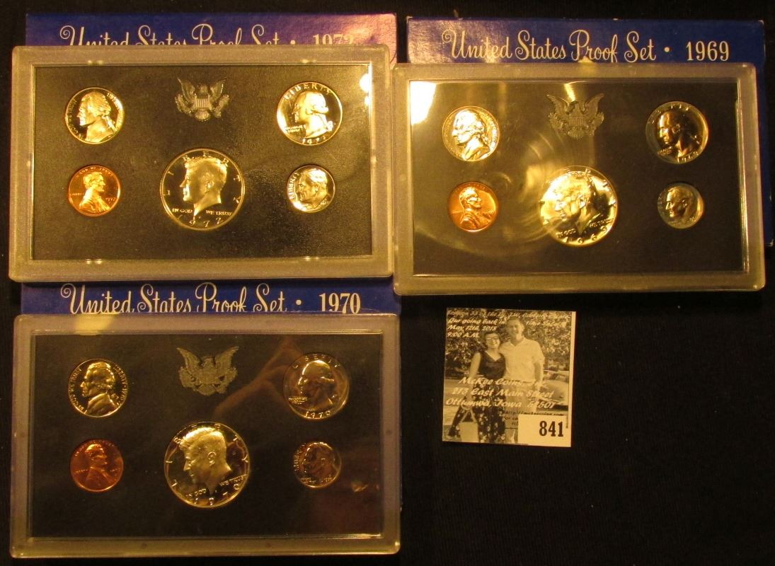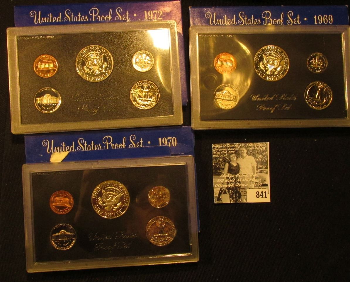 1969 S, 70 S, & 72 S U.S. Proof Sets. Original as issued.