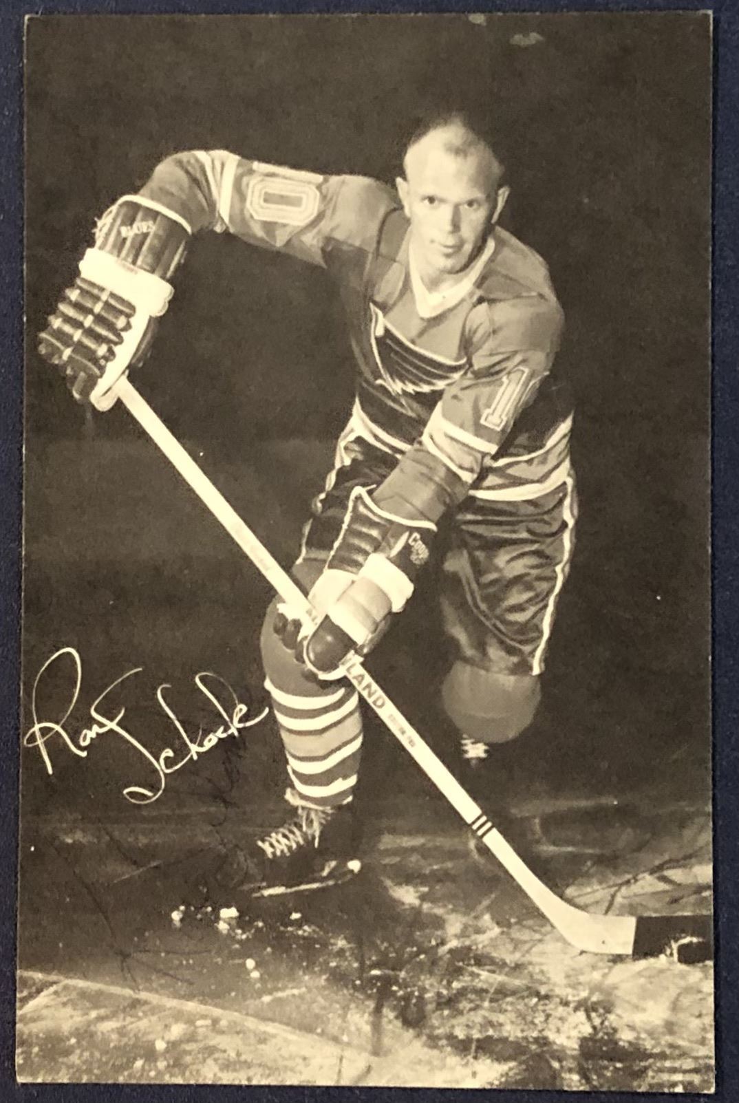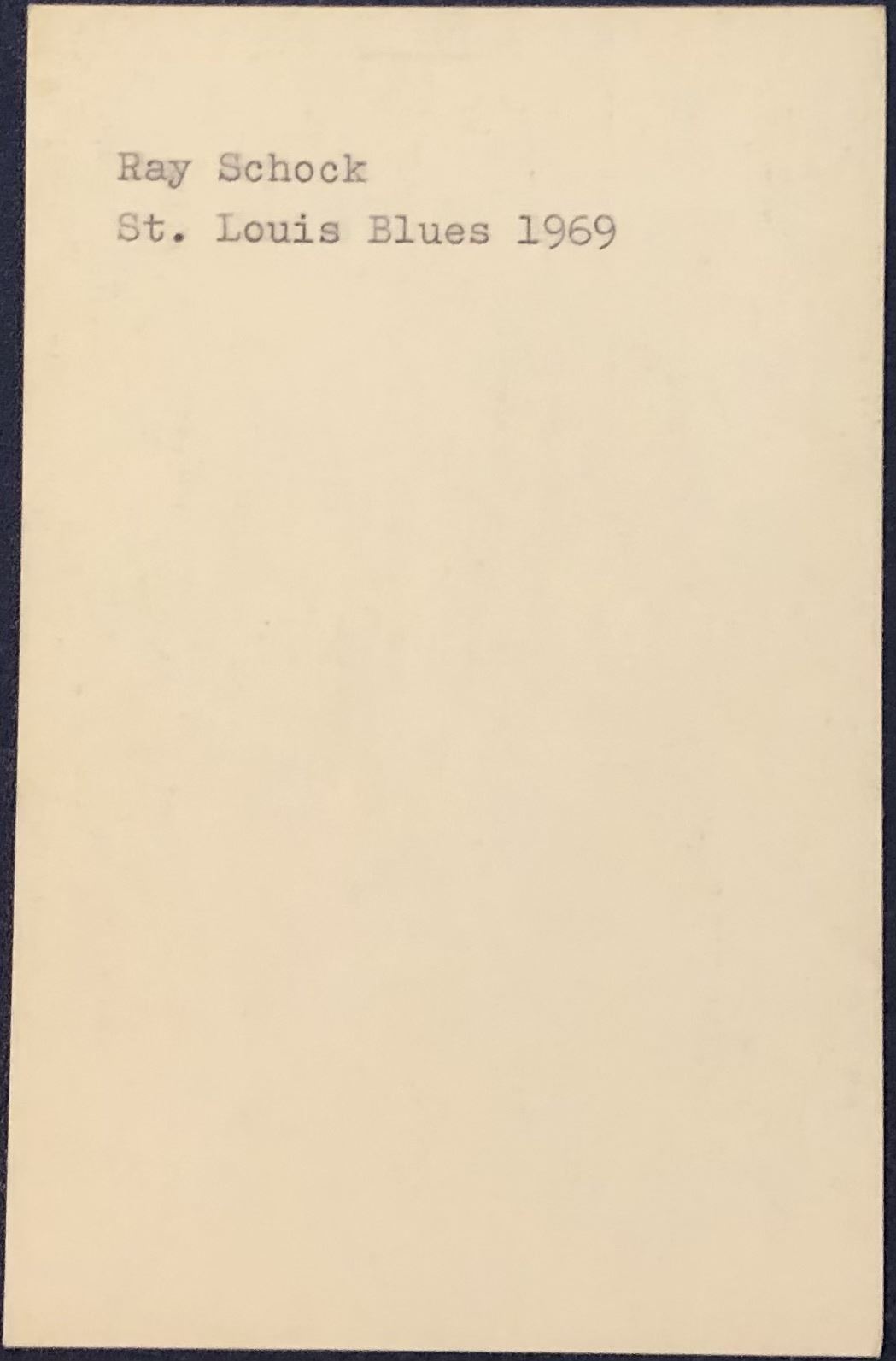1969 ST. LOUIS BLUES 3.5"x5.5" POSTCARD - RON SCHOCK - SIGNED