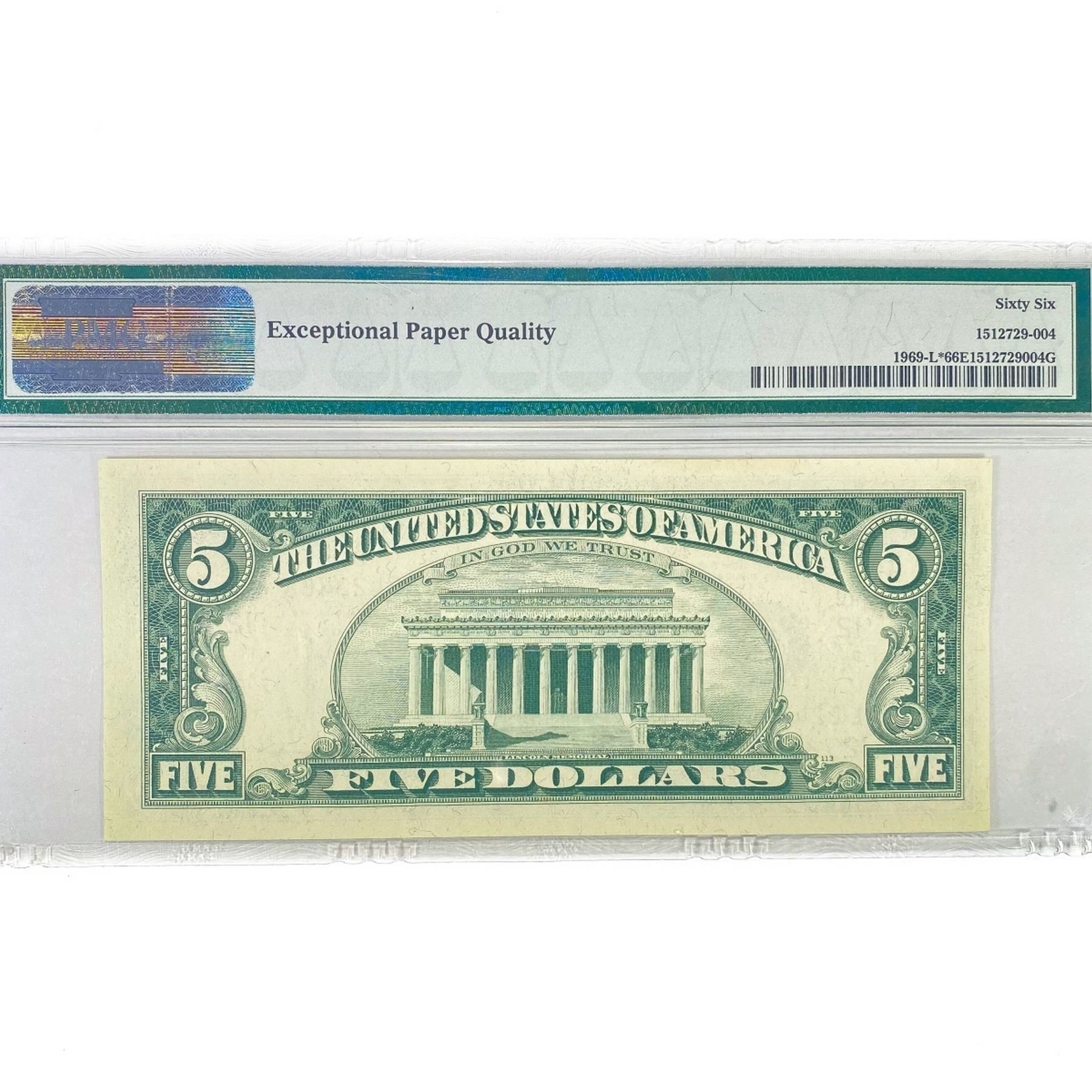 1969 Star $5 Fed Reserve Note PMG GEM UNC 66