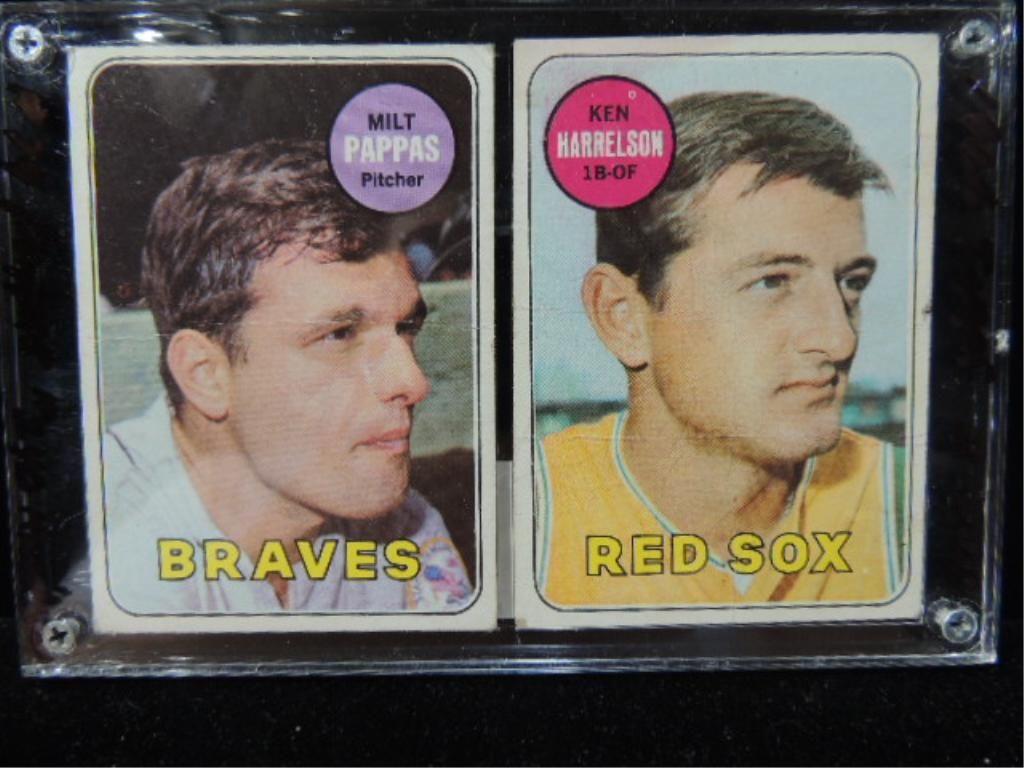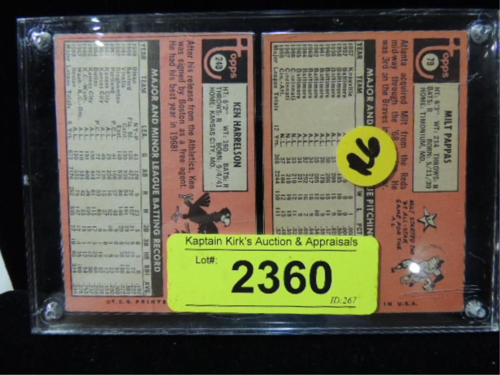 MILT PAPPAS #79 & KEN HARRELSON #240 BASEBALL PLAYER CARDS. BASEBALL TRADING CARDS. VINTAGE CARDS. AS SHOWN. SEE PHOTO FOR MORE DETAILS.