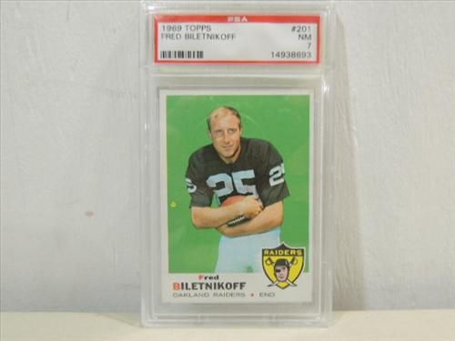 1969 TOPPS #201 GRADED FOOTBALL CARD FRED BILETNIKOFF. GRADED BY PSA NM 7. AS SHOWN. VIEW PICTURE FOR DETAIL.