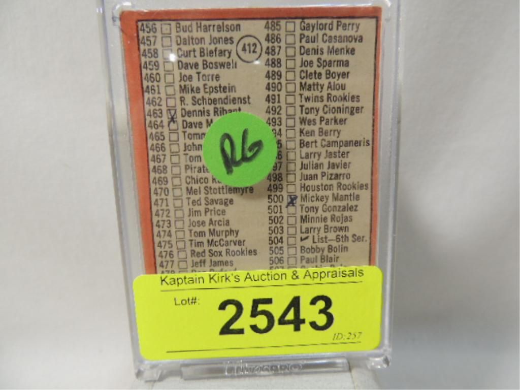 1969 TOPPS #412 MANTLE CHECK LIST