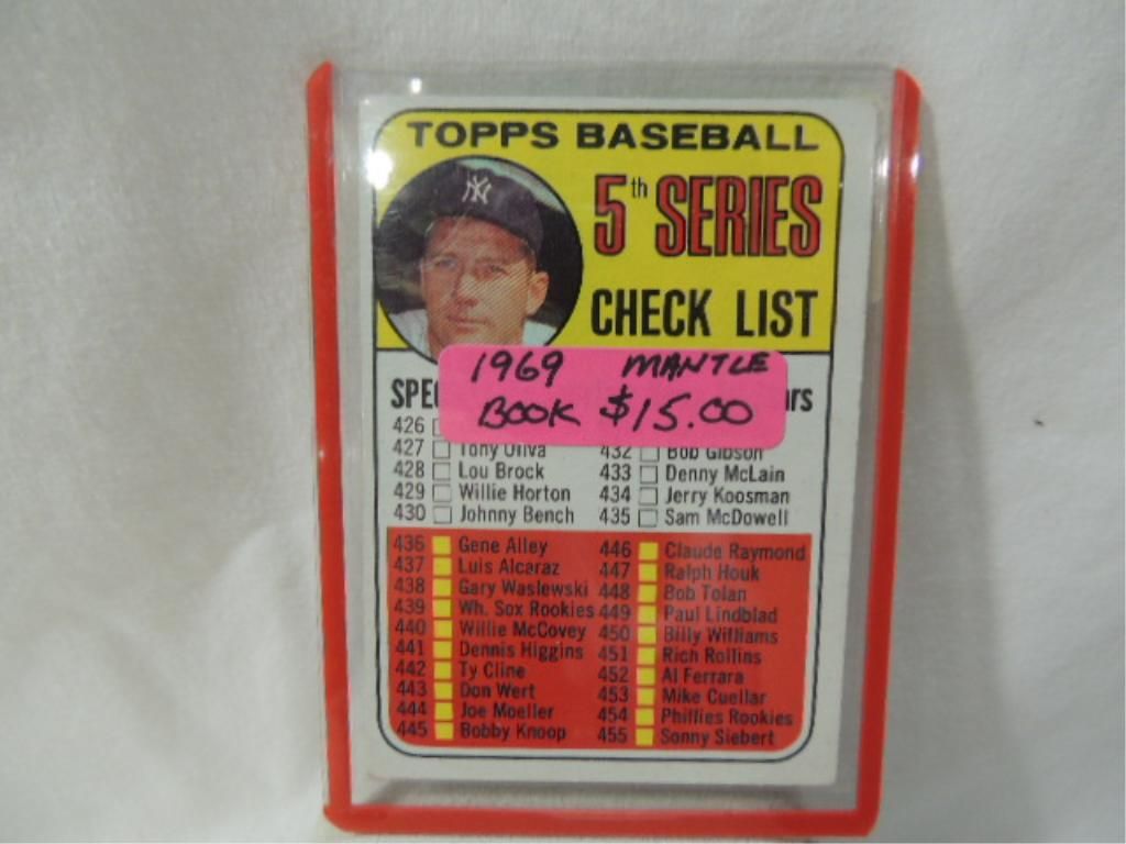 1969 MANTLE TOPPS BASEBALL 5TH SERIES CHECK LIST CARD. AS SHOWN. SEE PHOTO FOR MORE DETAILS.