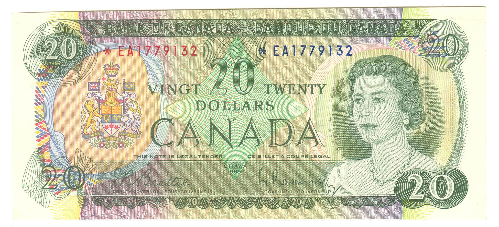 1969  Twenty Dollars  Replacement, BC-50aA, GEM UNC, Beattie Rasminsky, serial *EA1779132.