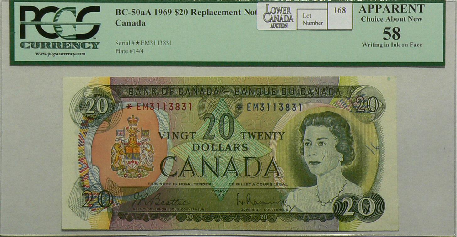 1969 Twenty Dollars Replacement, BC-50aA, PCGS AU-58, Beattie Rasminsky, serial *EM3113831.