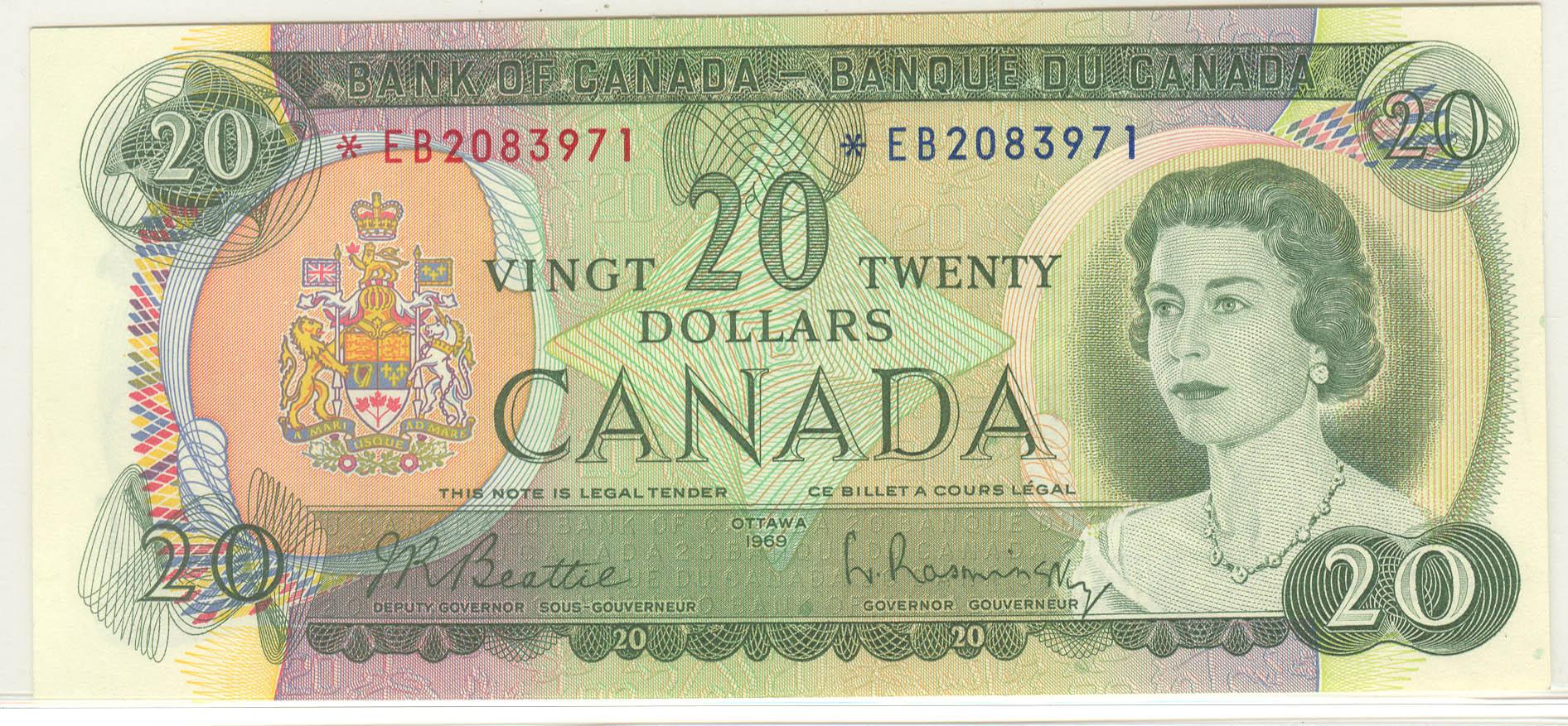 1969 Twenty Dollars Replacement, BC-50aA, UNC, Beattie Rasminsky, serial *EB2083971.