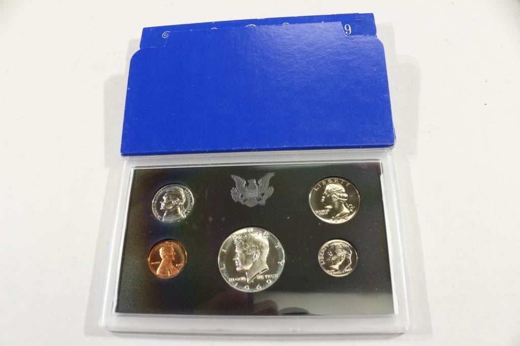 1969 US PROOF SET WITH BOX, 40% SILVER JFK HALF