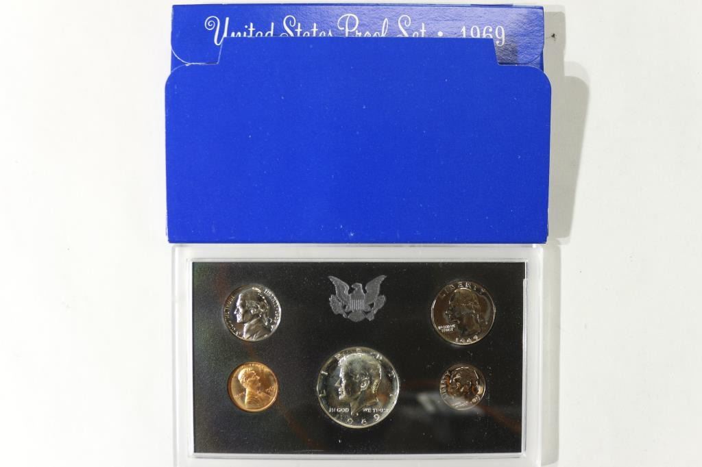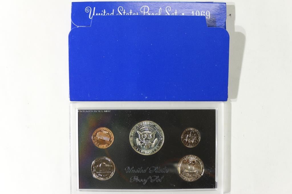 1969 US PROOF SET WITH BOX, 40% SILVER JFK HALF