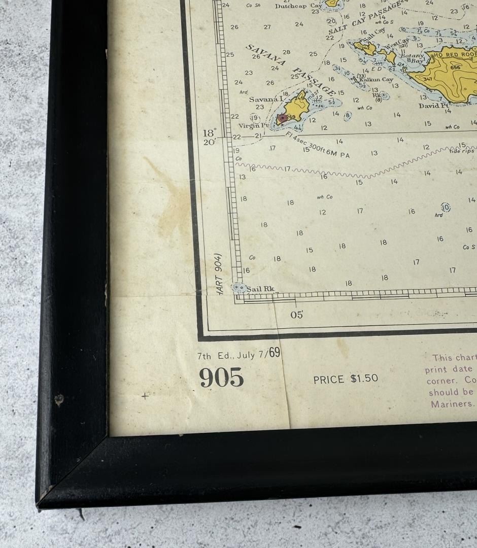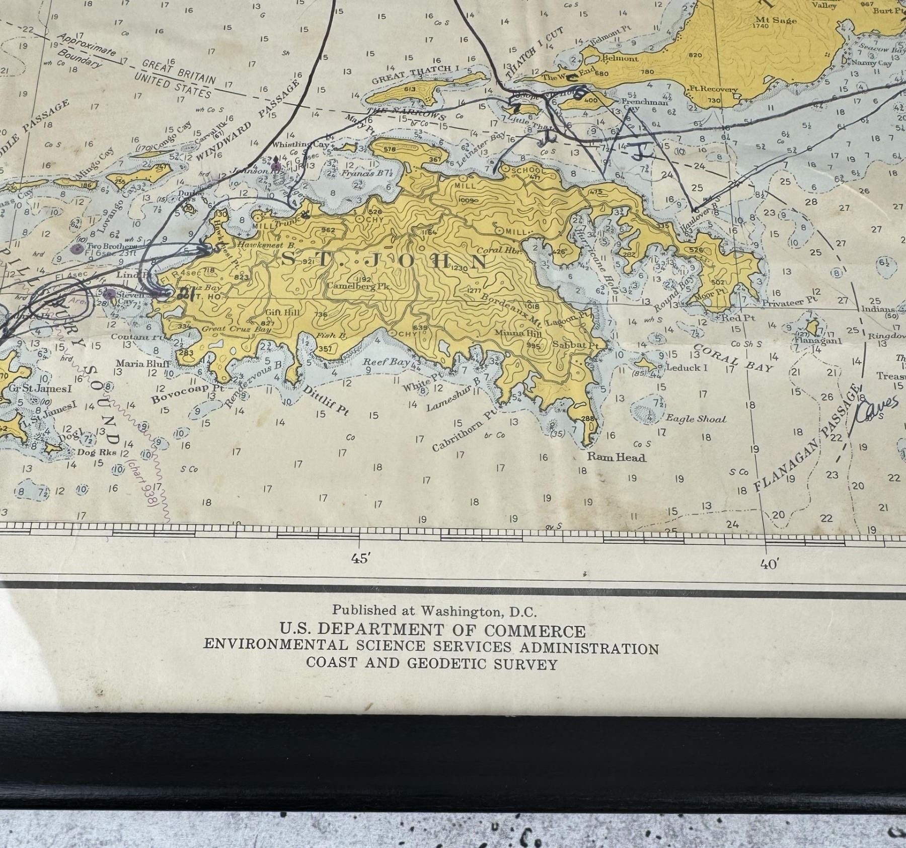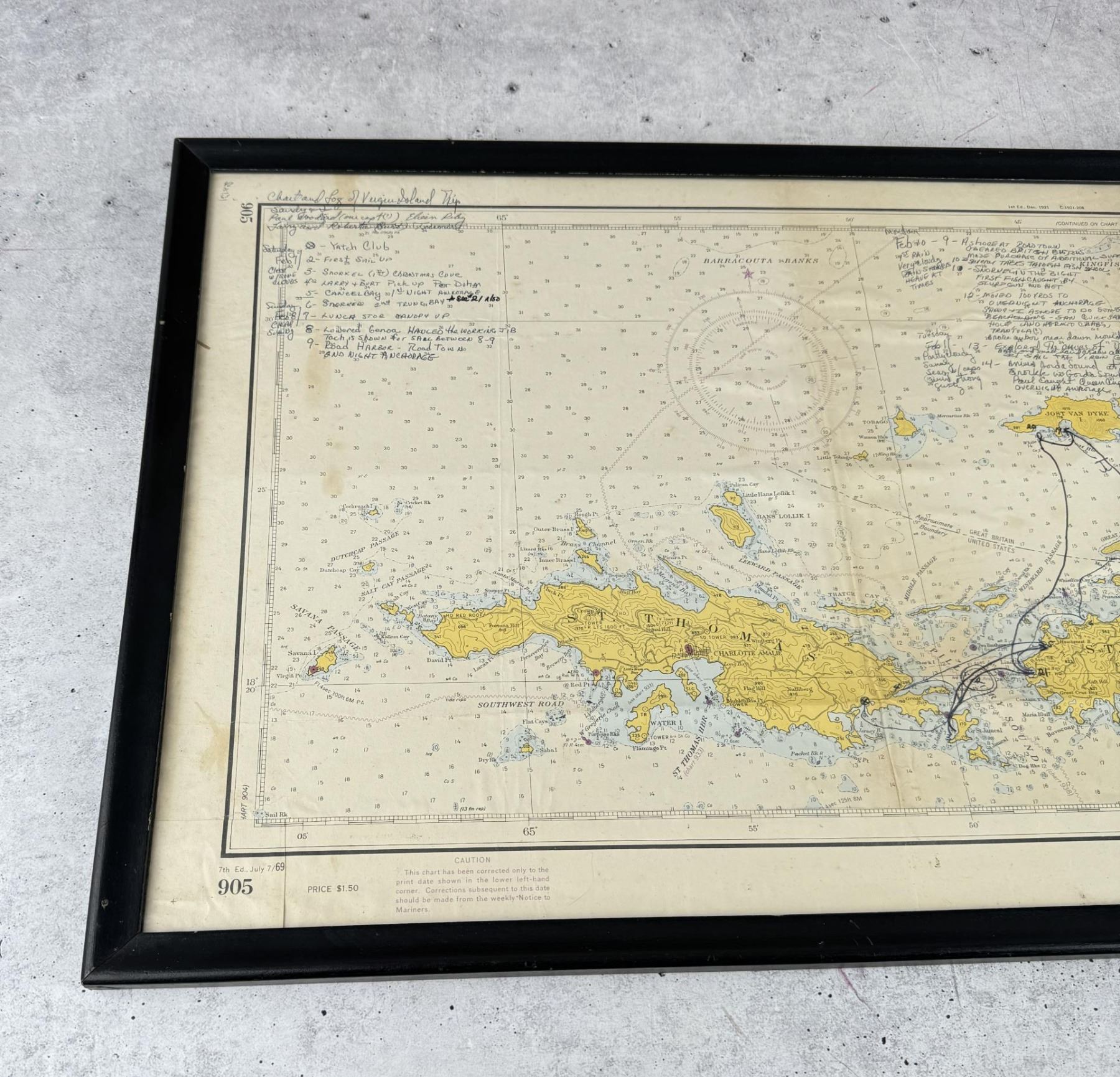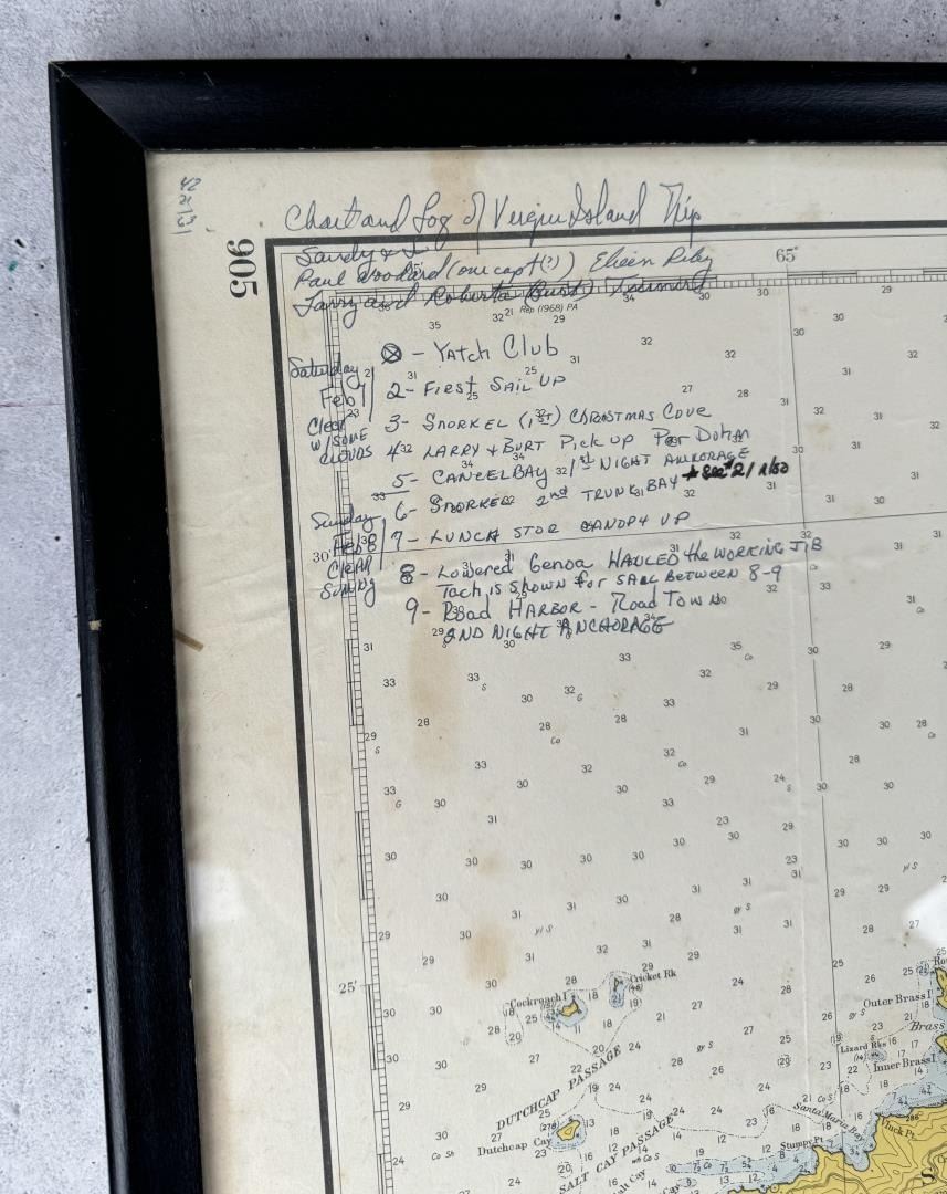 Interesting map with trip notes. 16" by 34 1/2" framed.